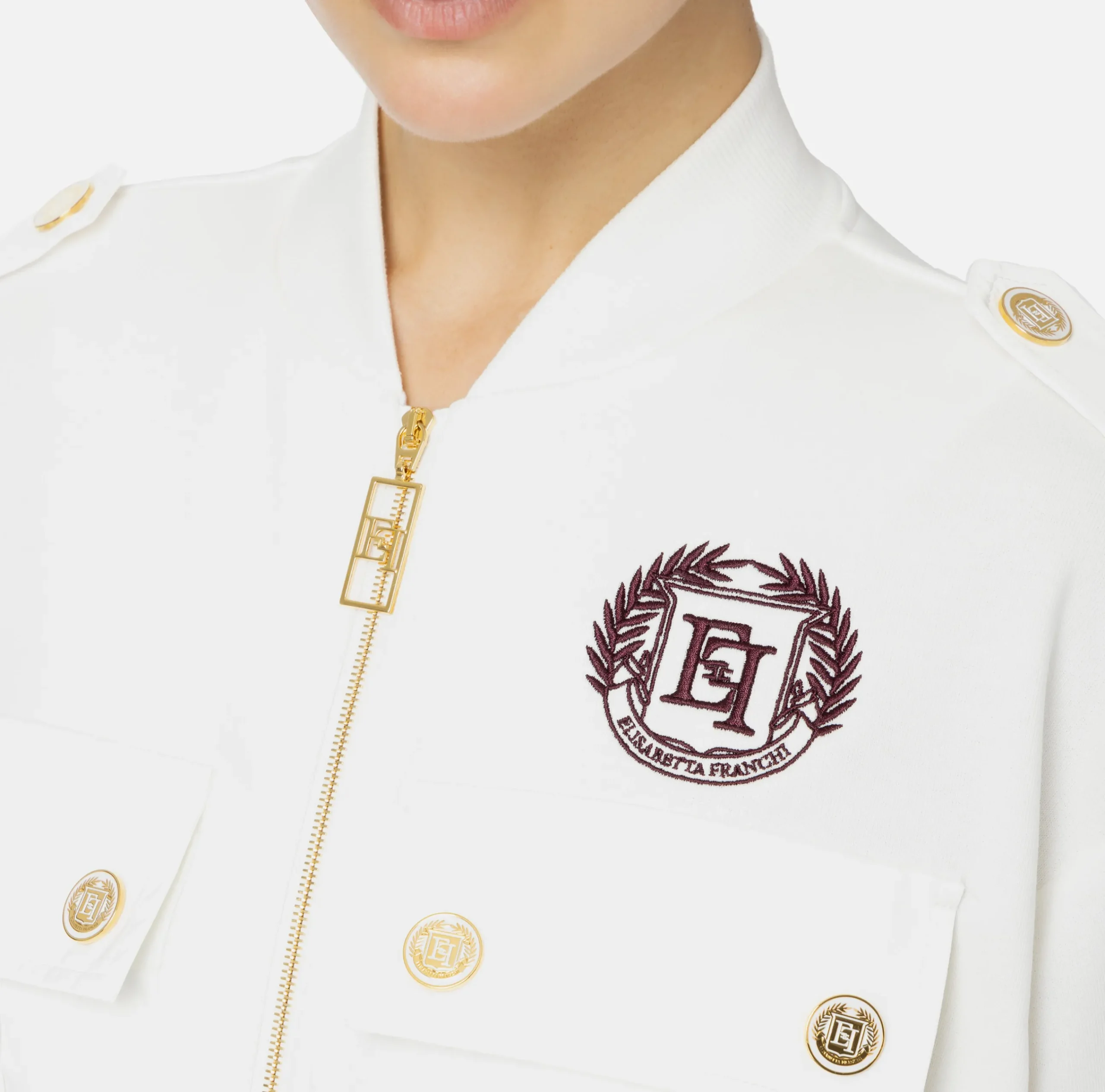 Tute|Elisabetta Franchi Tuta in felpa con tasche in nylon tecnico Avorio