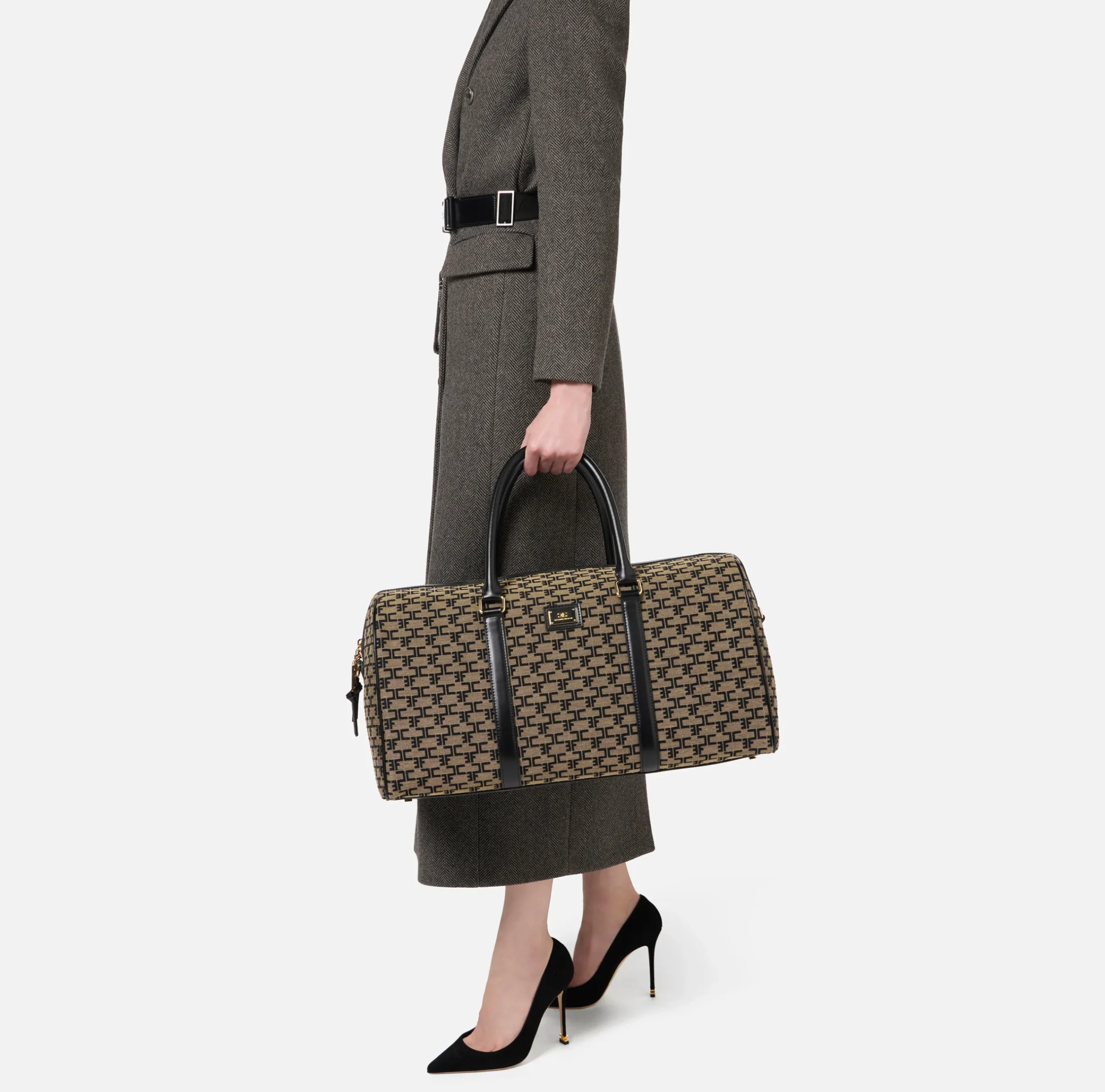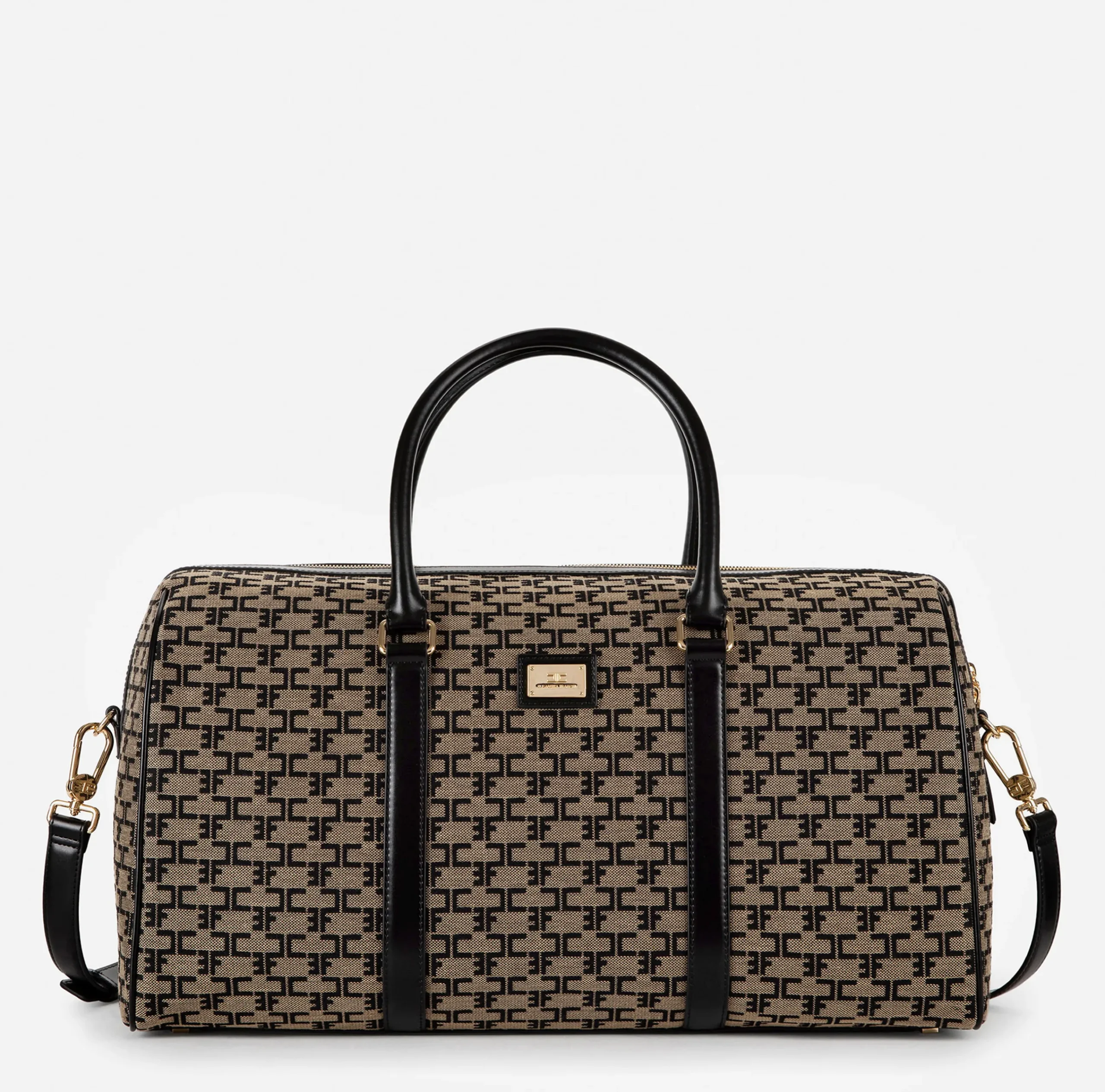 Valigeria|Elisabetta Franchi Borsone Weekend Monogram Travel Liquirizia/Nero