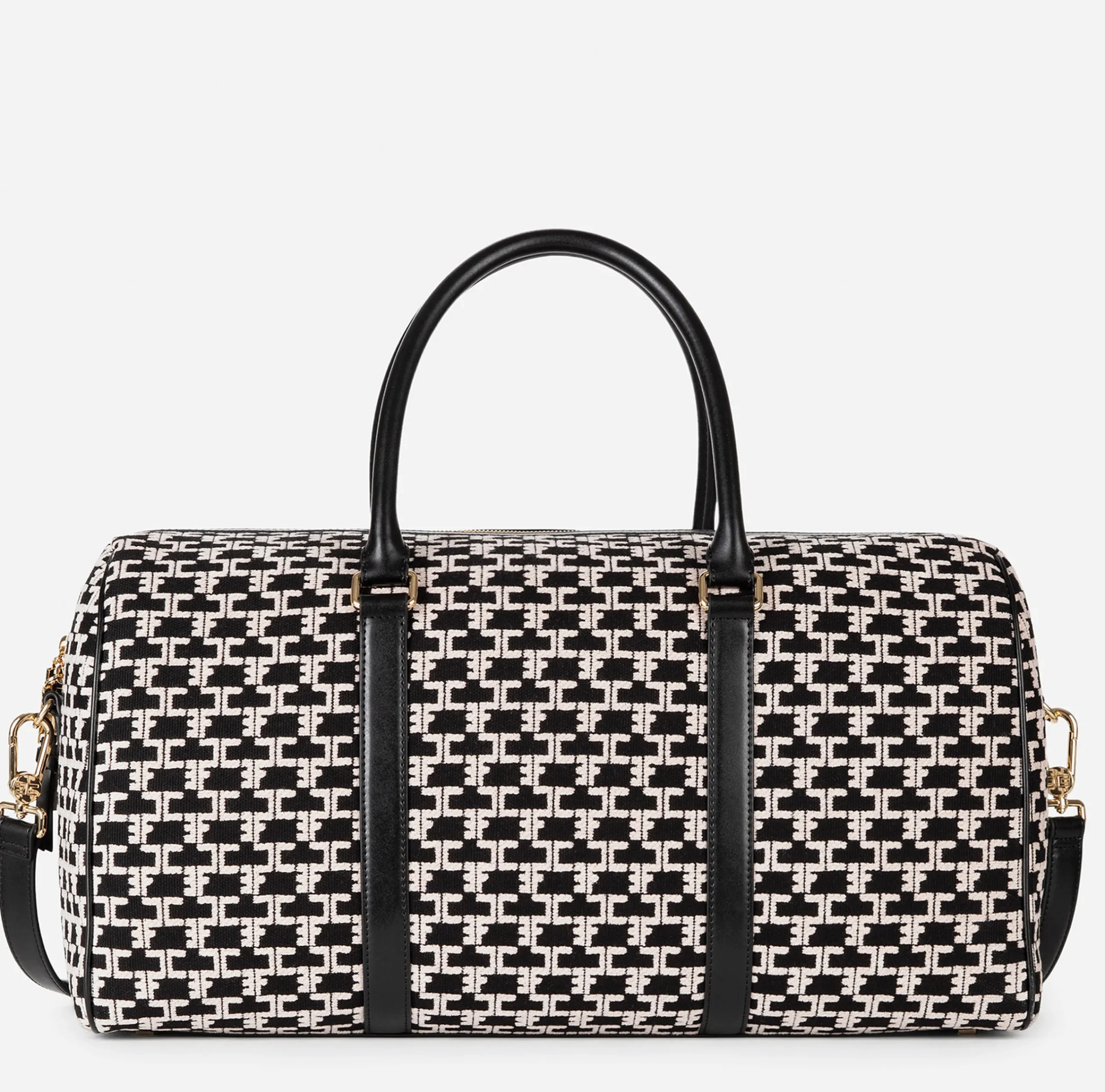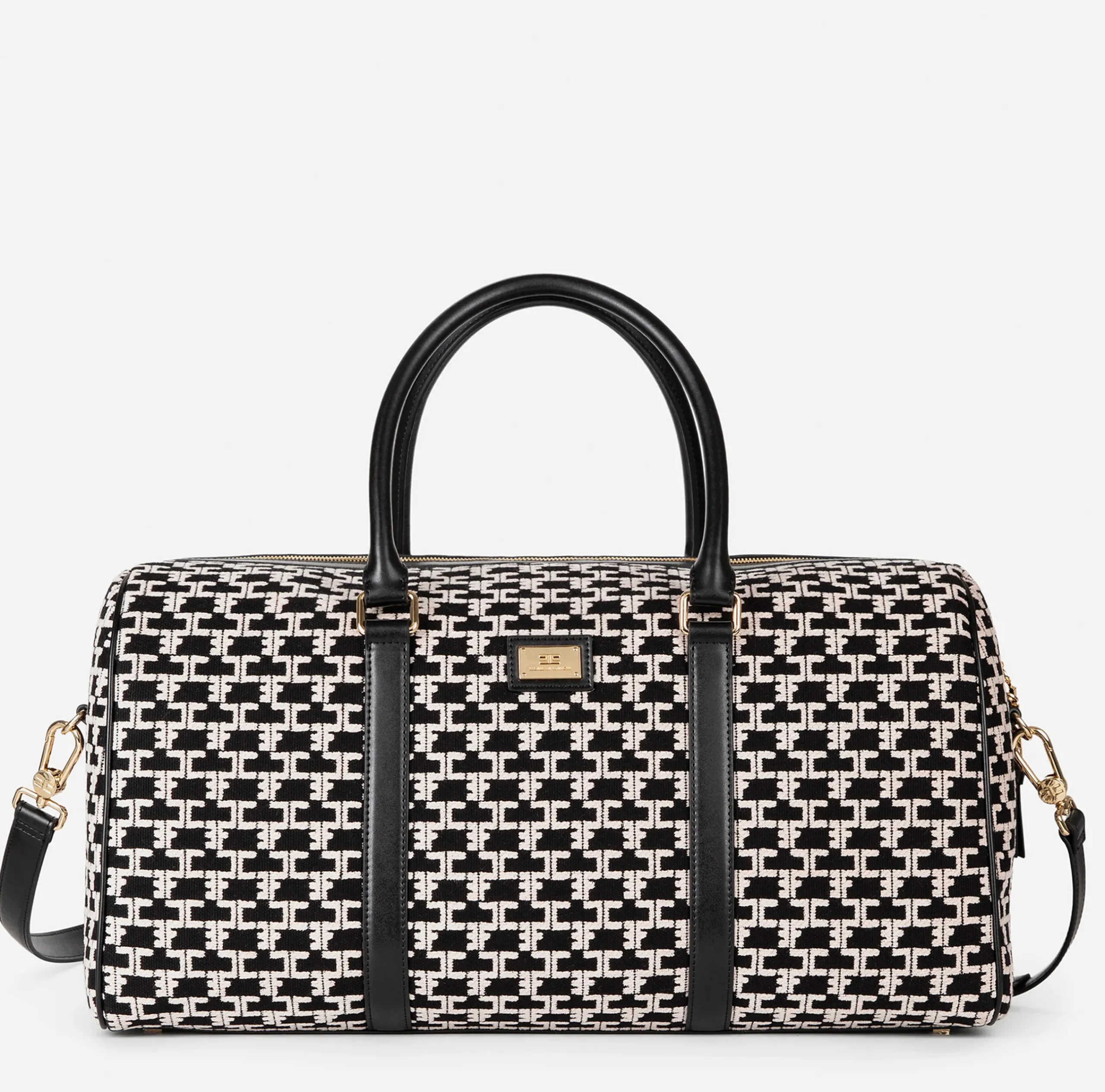 Valigeria|Elisabetta Franchi Borsone Weekend Monogram Travel Nero/Burro