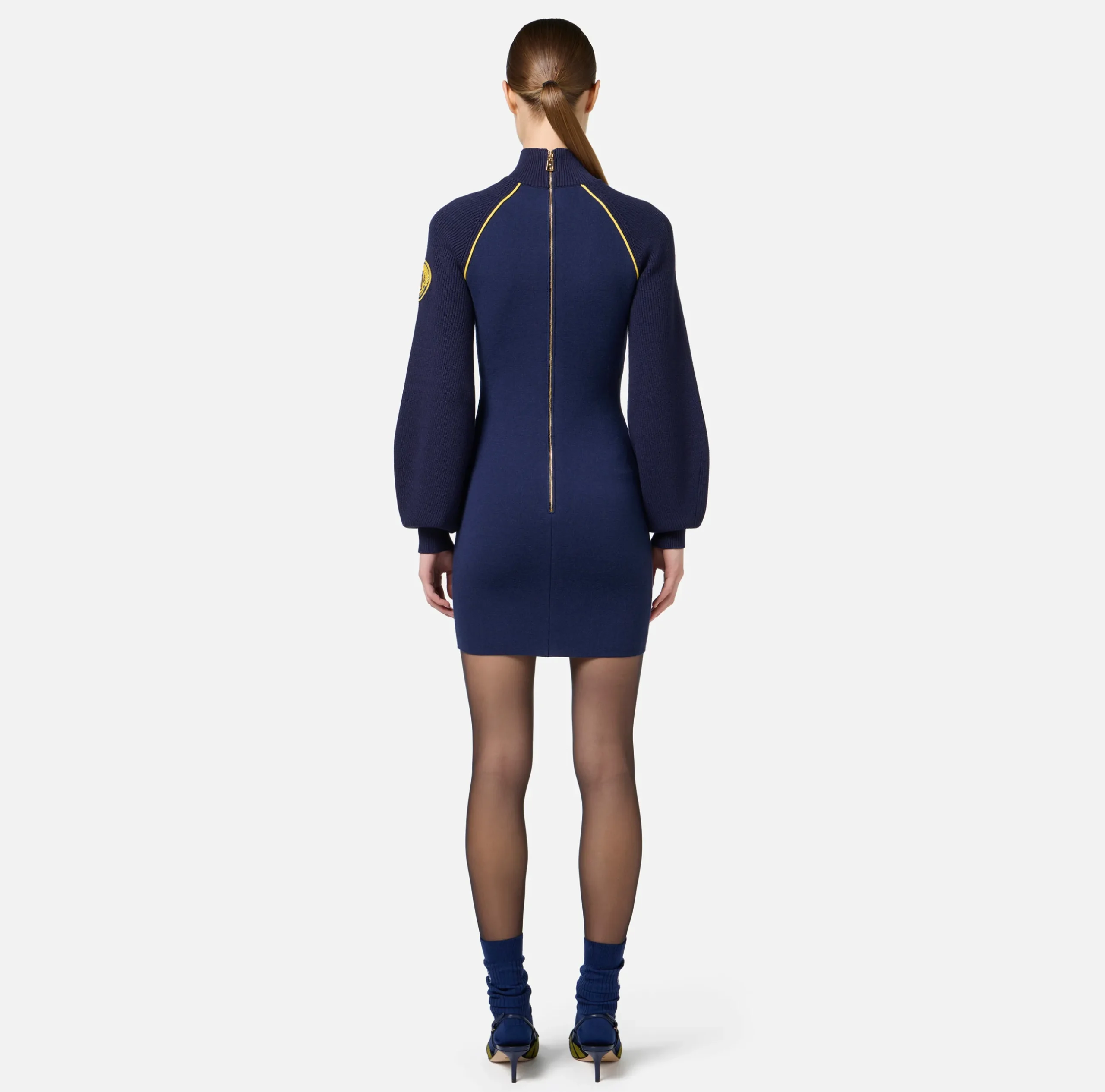 Abiti In Maglia|Mini Abiti|Elisabetta Franchi Miniabito in viscosa con patch logo Navy/Mimosa