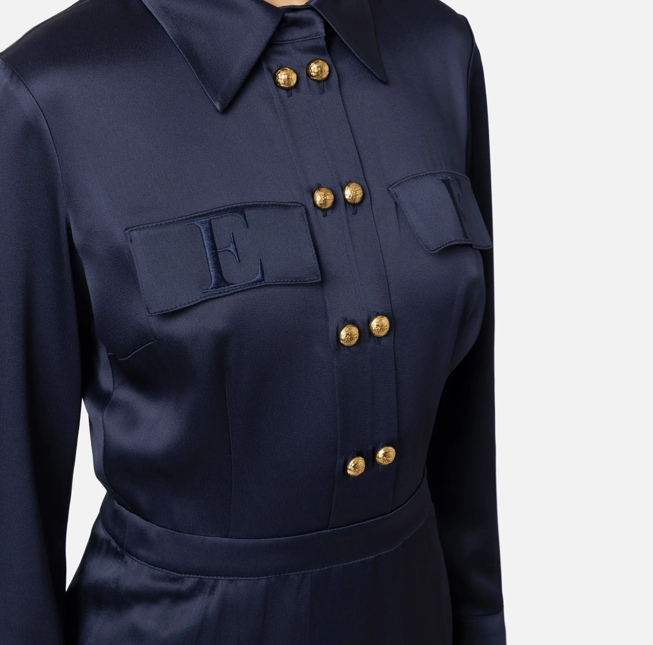 Abiti Midi|Abiti|Elisabetta Franchi Abito chemisier in crêpe con tasche Navy
