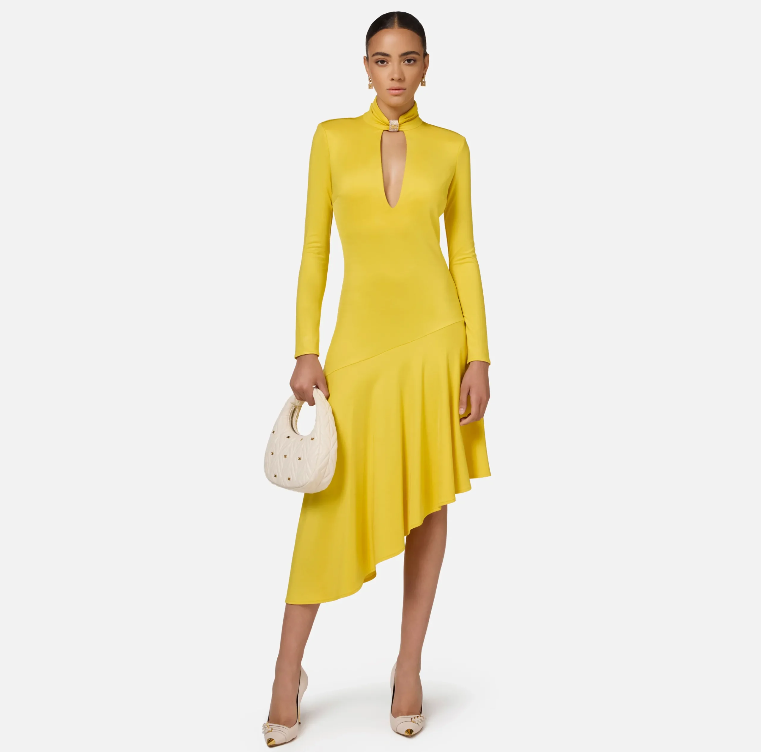 Abiti Midi|Abiti|Elisabetta Franchi Abito midi in jersey con accessorio gioiello Mimosa