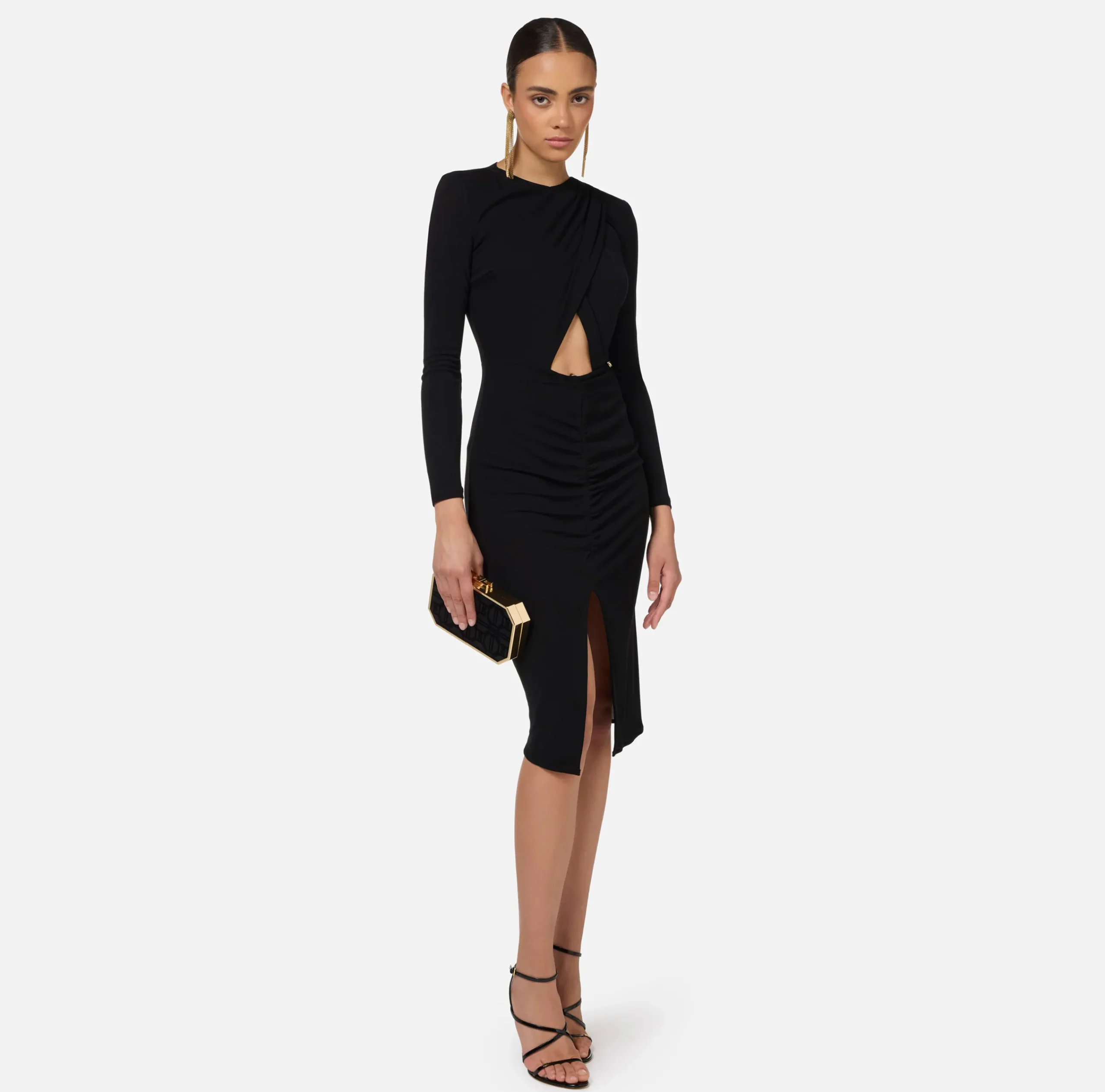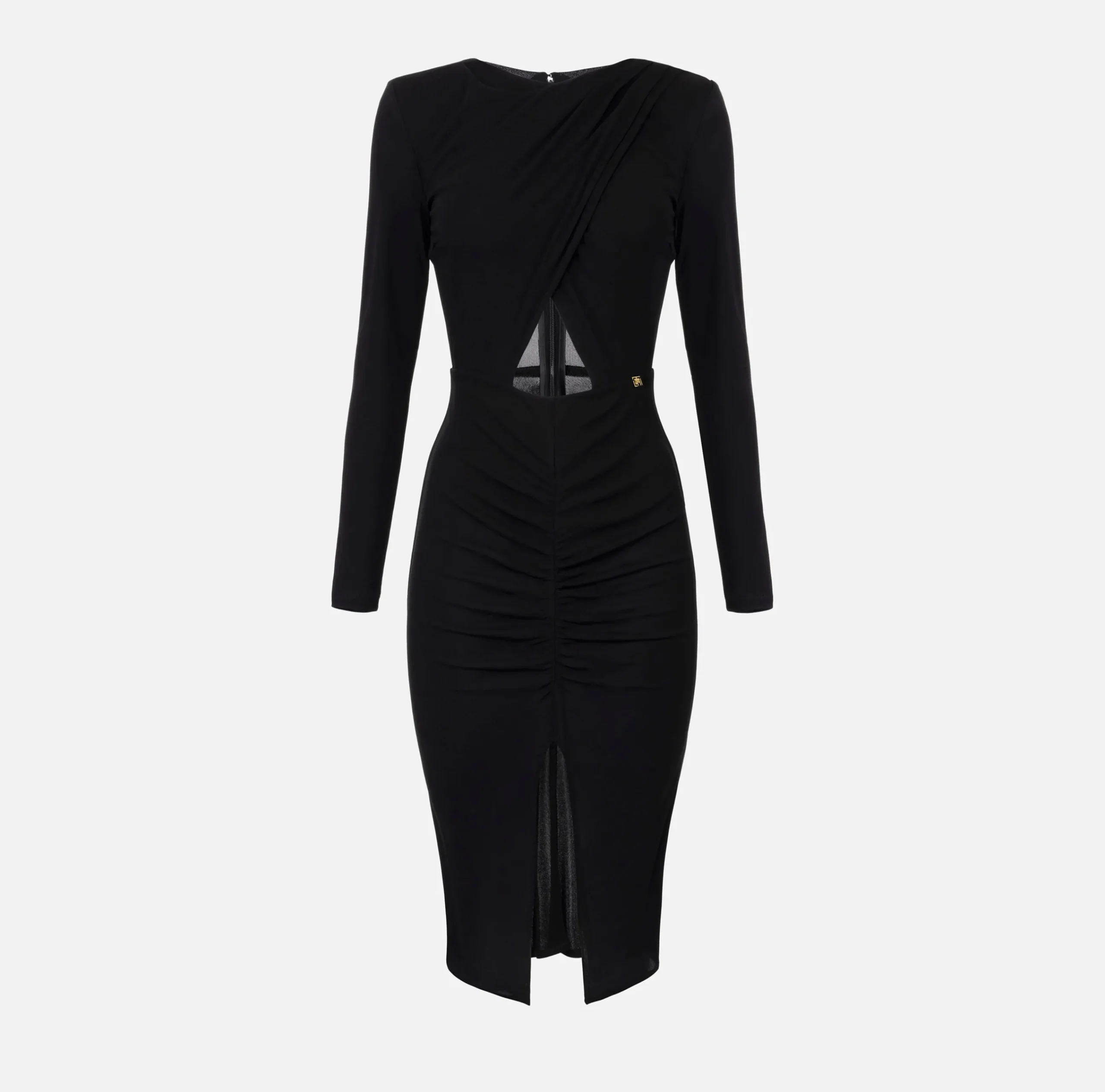 Abiti Midi|Abiti|Elisabetta Franchi Abito midi in jersey lucido con drappeggio Nero