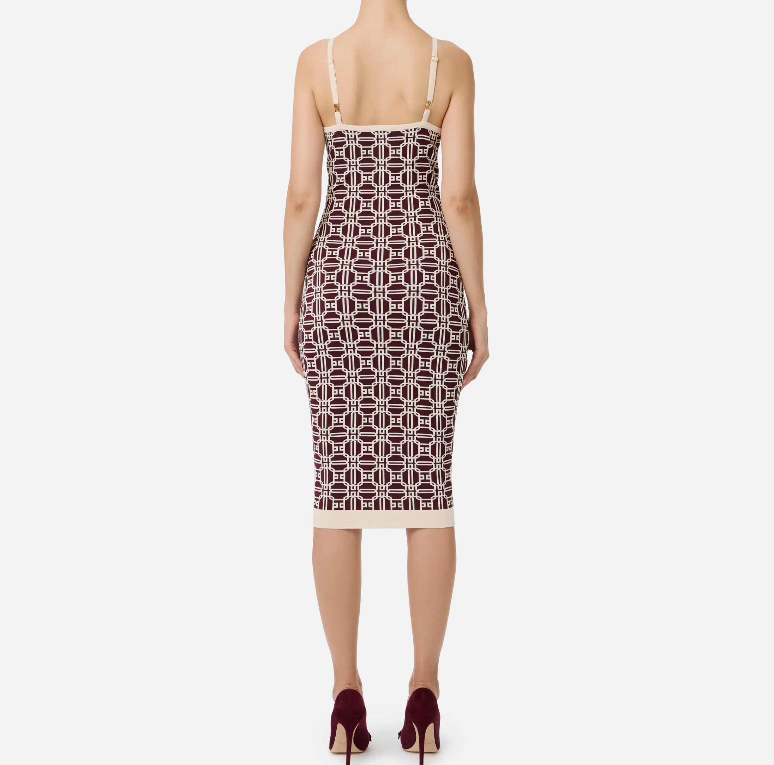 Abiti|Abiti Midi|Elisabetta Franchi Abito midi logo jacquard RougeNoir/Burro