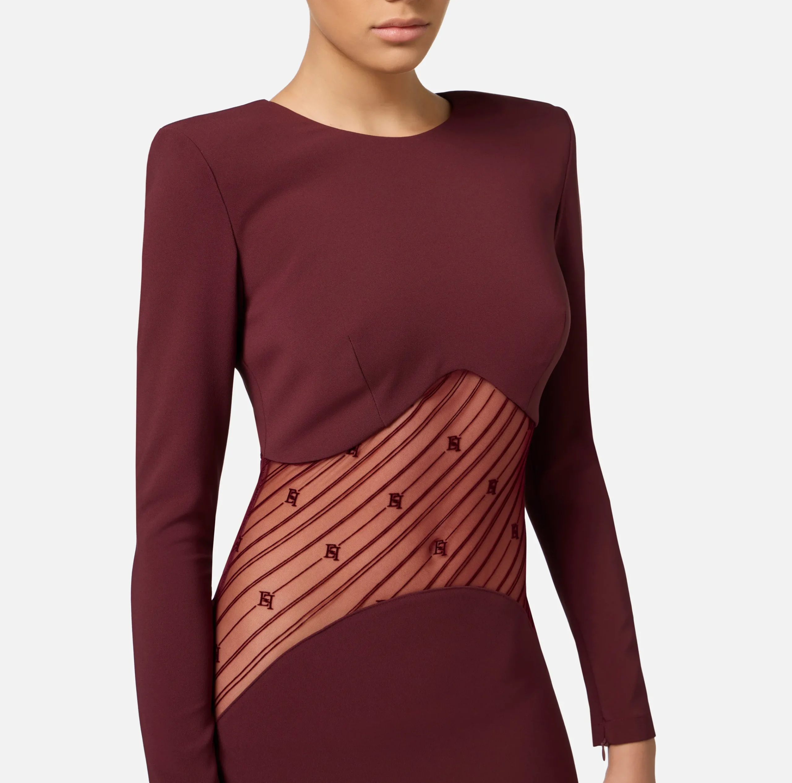 Abiti|Abiti Red Carpet|Elisabetta Franchi Abito red carpet in crêpe con inserto di tulle flock RougeNoir