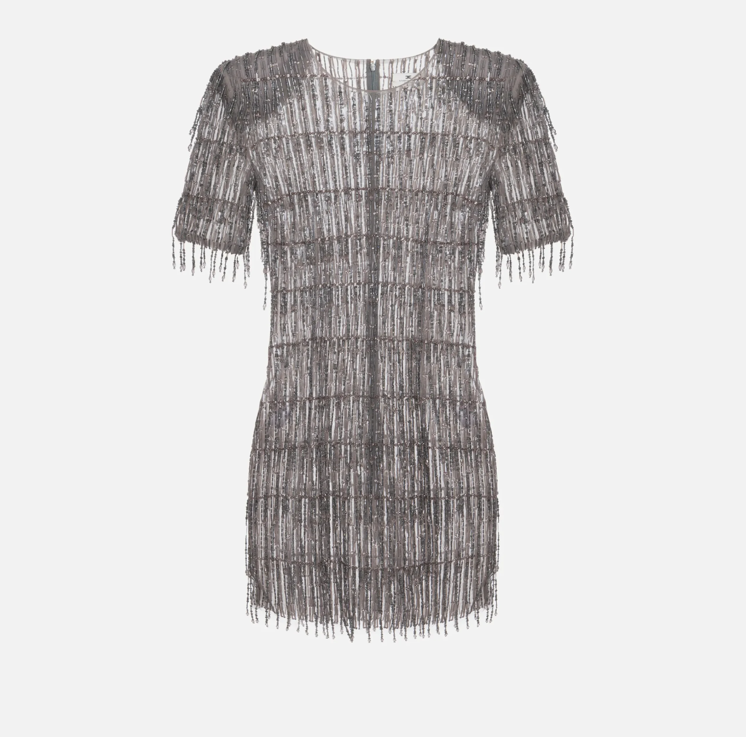 Abiti|Abiti Red Carpet|Elisabetta Franchi Miniabito boxy in tulle ricamato con paillettes Steel