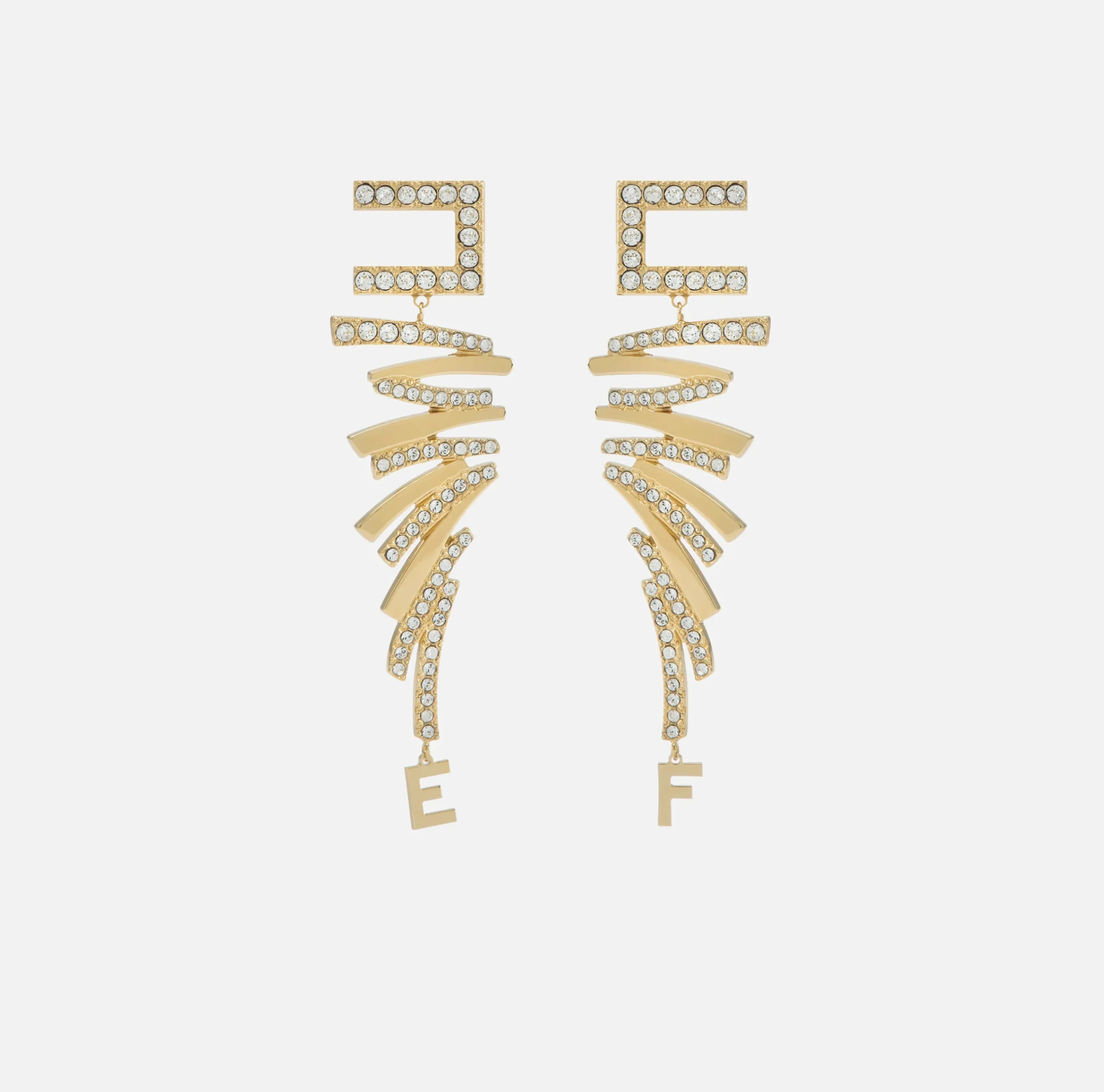Bijoux|Elisabetta Franchi Orecchini logo in metallo dorato e strass design zig zag OroGiallo