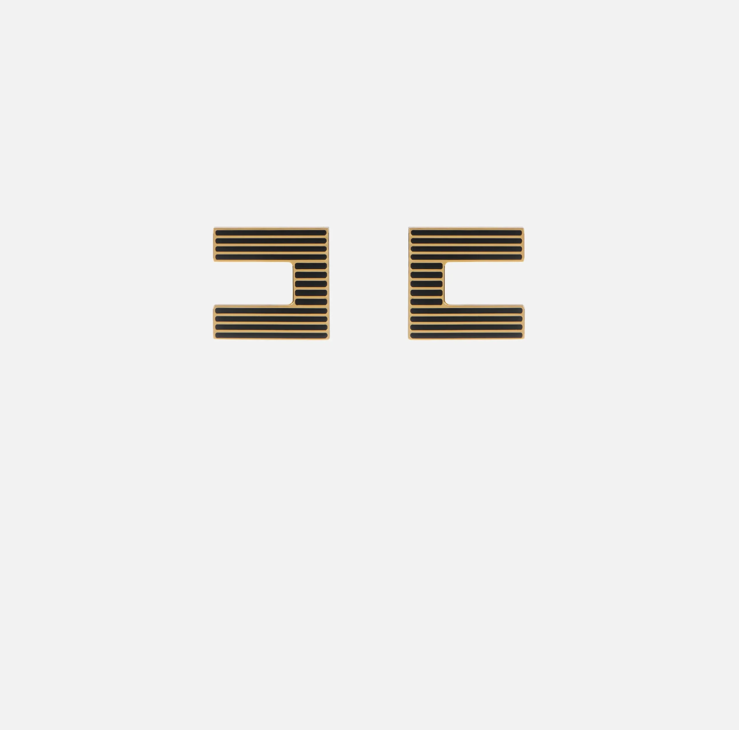 Bijoux|Elisabetta Franchi Orecchini logo in ottone a righe smaltate OroGiallo/Nero