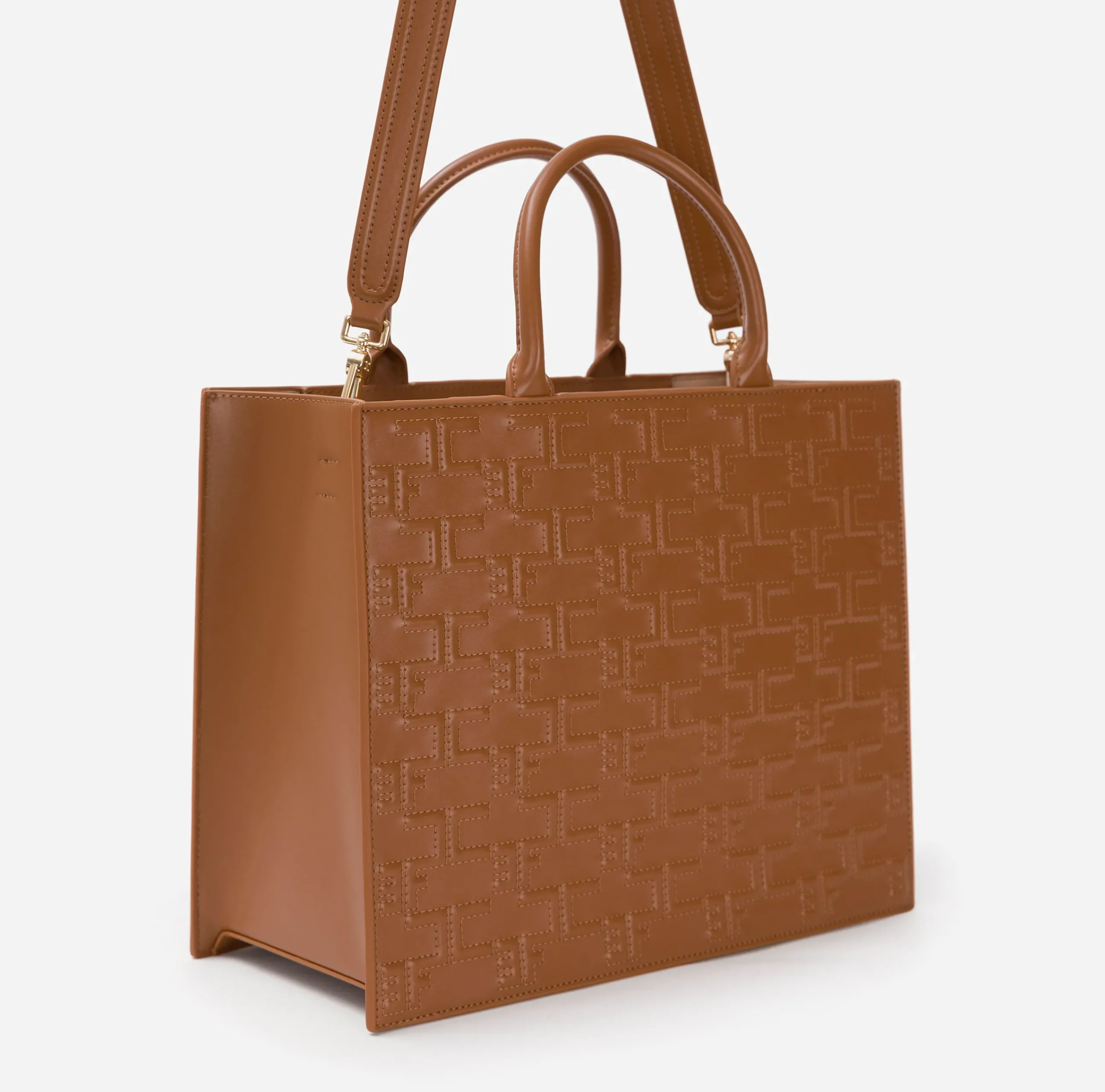 Borse A Mano|Elisabetta Franchi Bold Monogram Large Shopper Cuoio