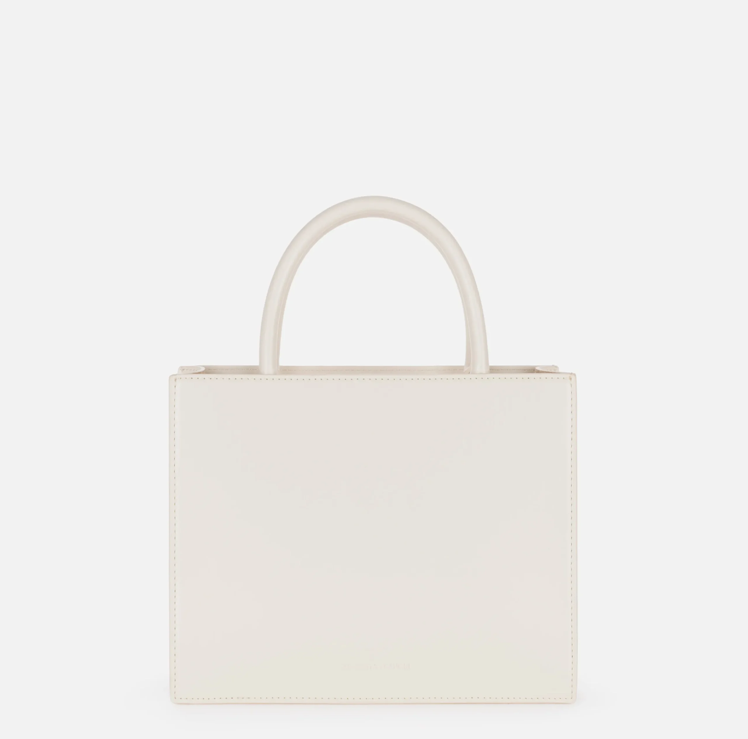 Borsa a mano piccola in materiale sintetico effetto spazzolato con chiusura a zip. È caratterizzata da maxi placca EF in metallo dorato e logo doppia C fasciato. Include tracolla di servizio per portabilità a spalla.