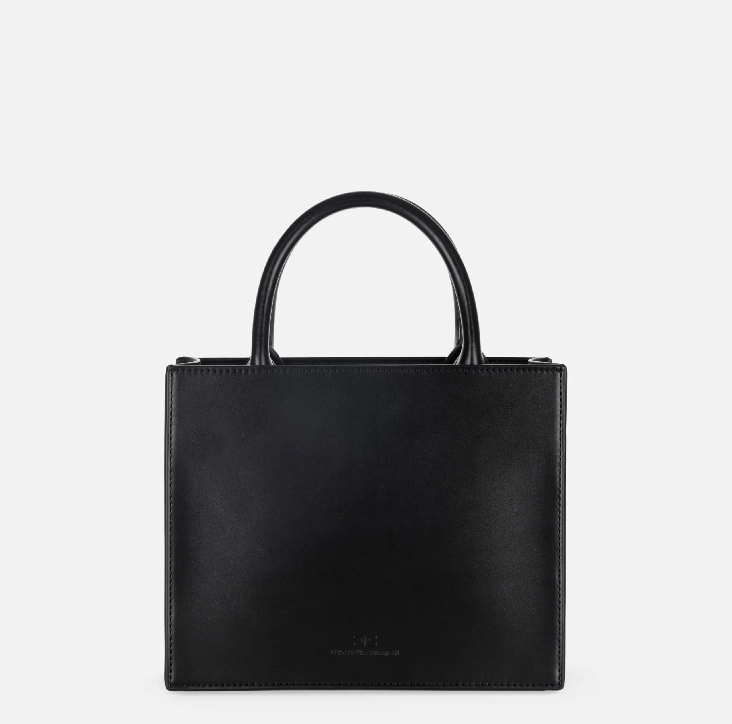Borsa a mano piccola in materiale sintetico effetto spazzolato con chiusura a zip. È caratterizzata da maxi placca EF in metallo dorato e logo doppia C fasciato. Include tracolla di servizio per portabilità a spalla.