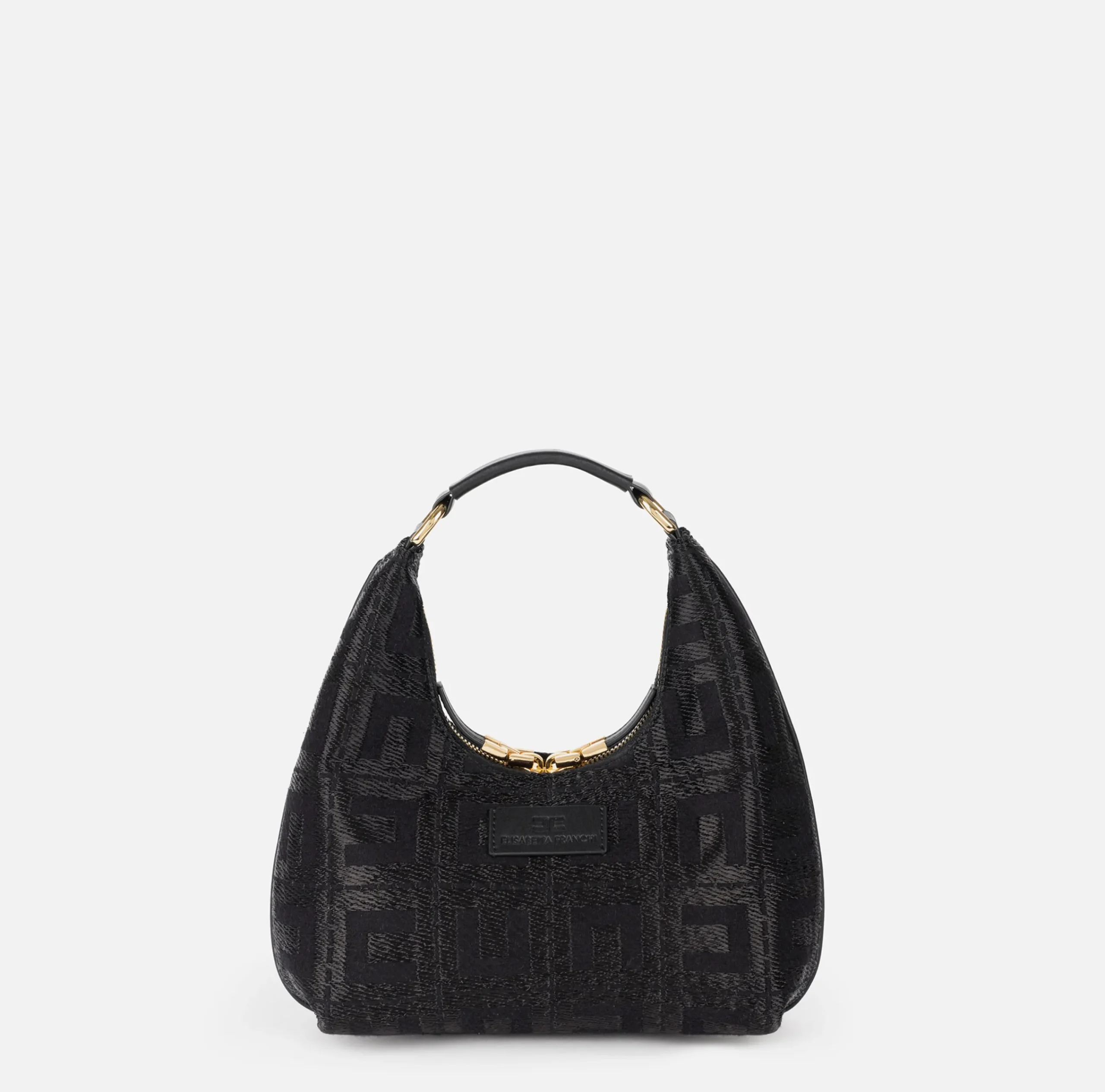 Borse A Mano|Elisabetta Franchi Borsa hobo in tessuto jacquard Nero