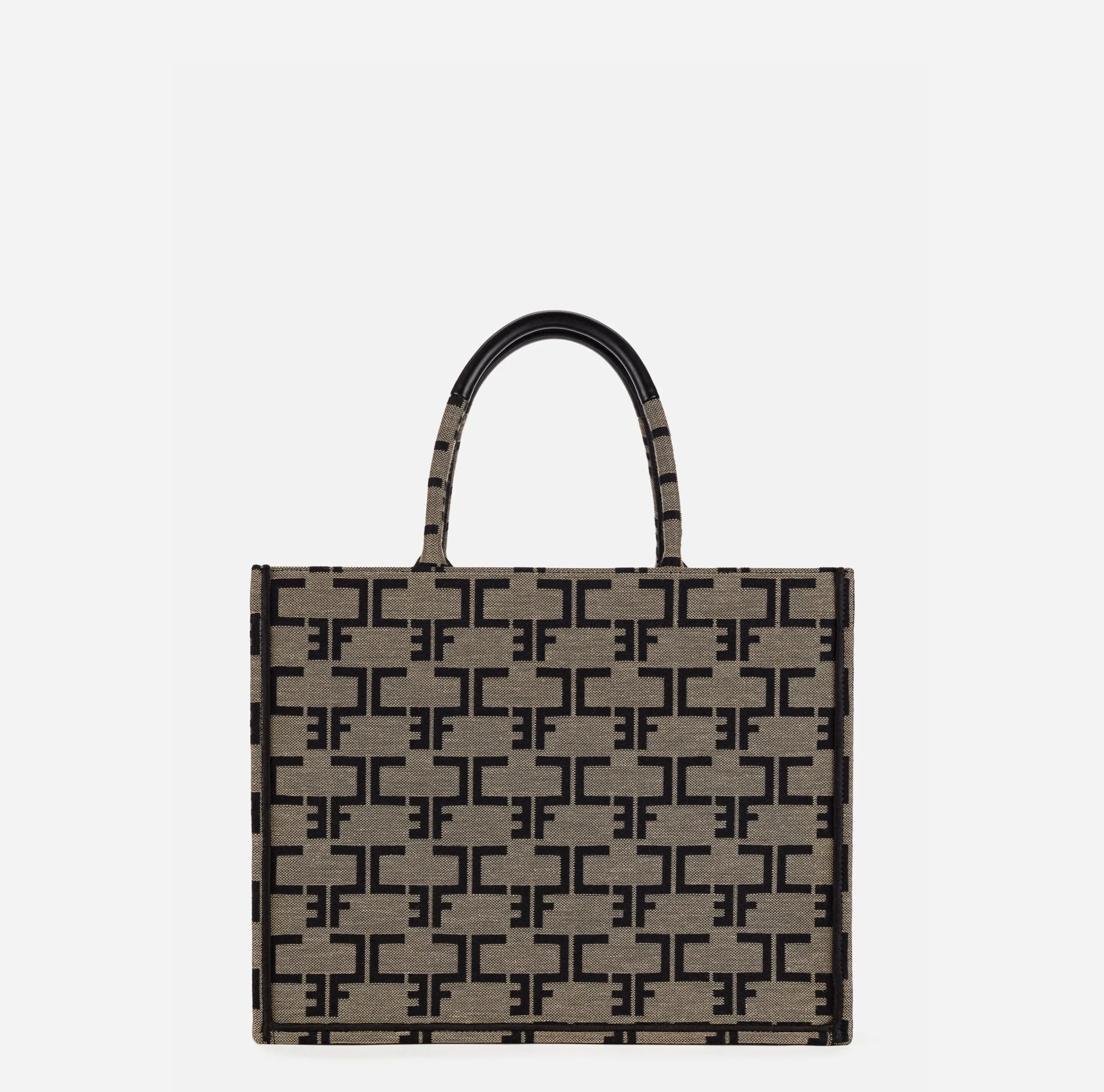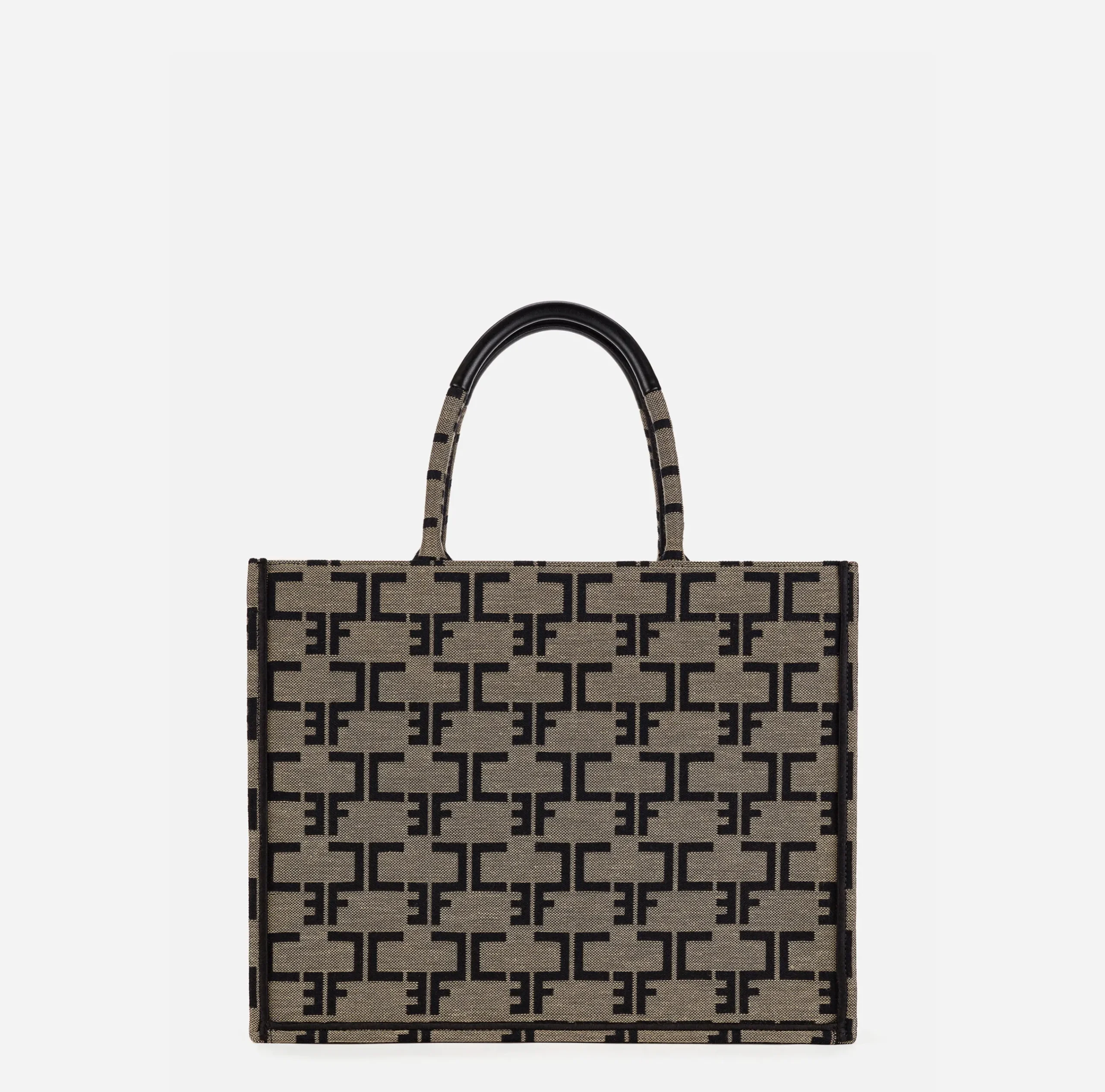 La nuova borsa iconica della Maison ha linee sofisticate e contemporanee. Una shopper dotata di pratici e comodi manici, silhouette capiente e rigorosa, è realizzata in tela jacquard, e ricoperta interamente dal nuovo monogram. Elisabetta Franchi la propone in due modelli diversi: scopritela nella dimesione mini e portatela sempre con voi h24.