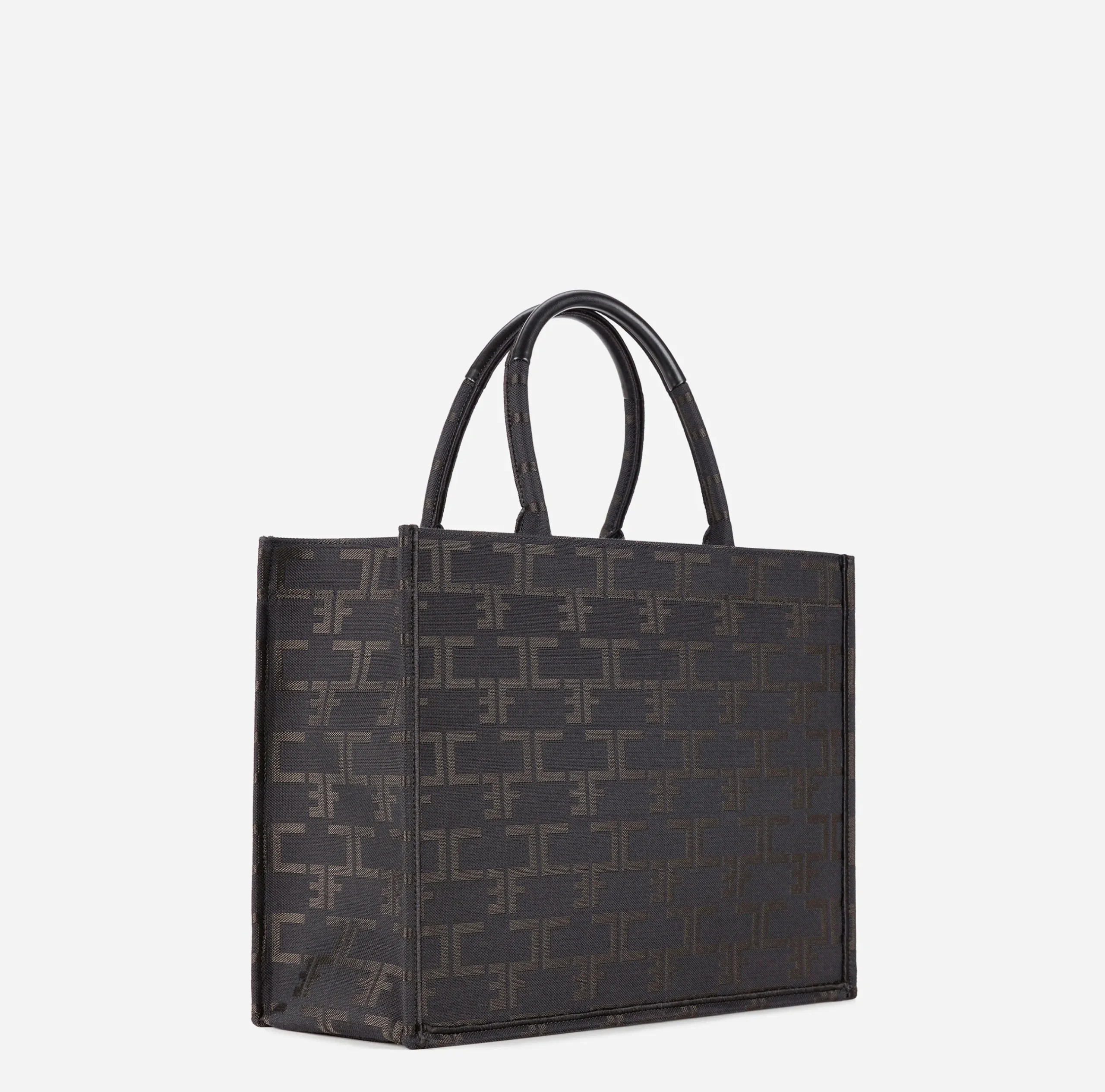 La nuova borsa iconica della Maison ha linee sofisticate e contemporanee. Una shopper dotata di pratici e comodi manici, silhouette capiente e rigorosa, è realizzata in tela jacquard, e ricoperta interamente dal nuovo monogram. Elisabetta Franchi la propone in due modelli diversi: scopritela nella dimesione mini e portatela sempre con voi h24.