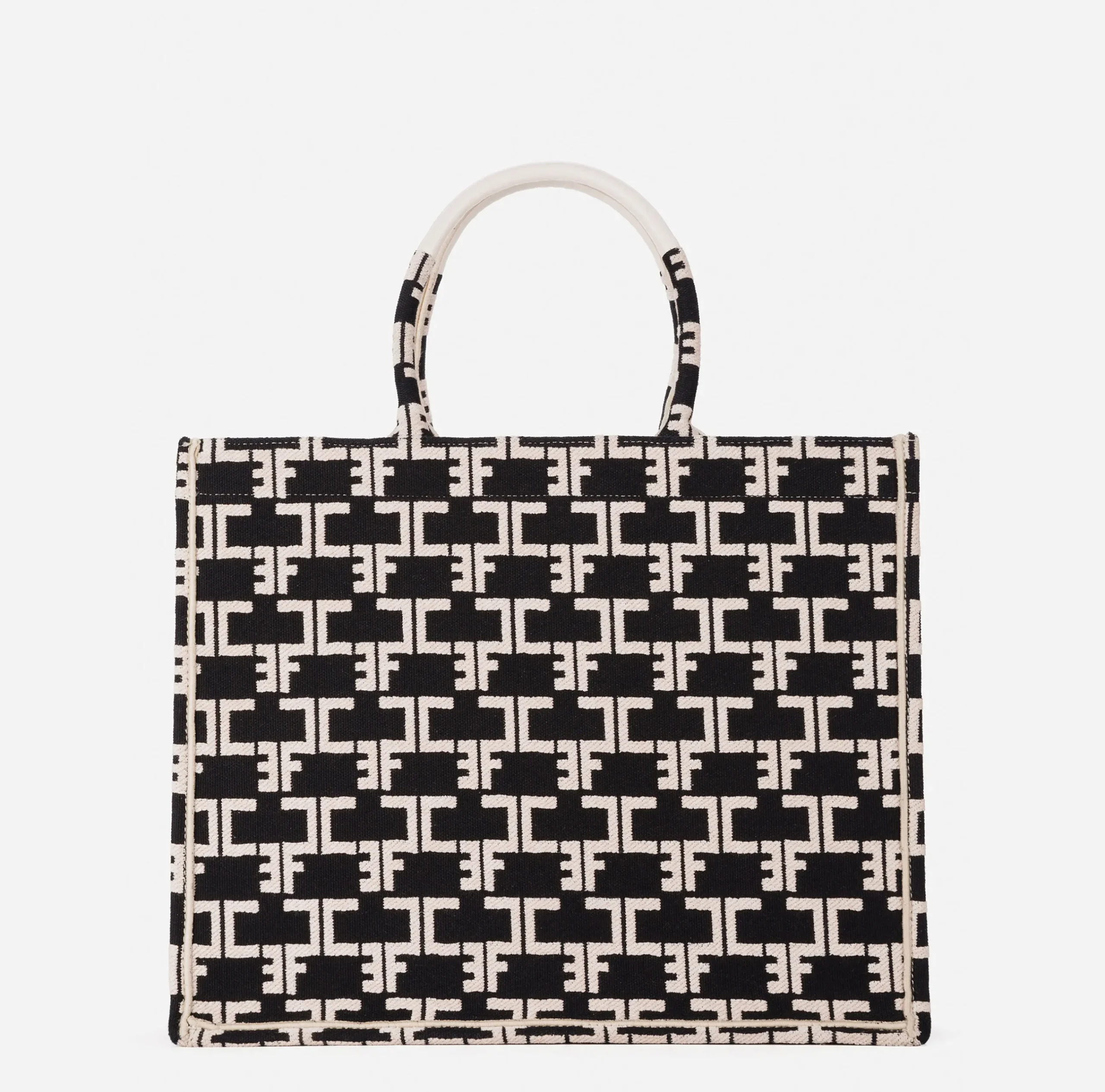 Borse A Mano|Elisabetta Franchi Monogram Tote Large Nero/Burro