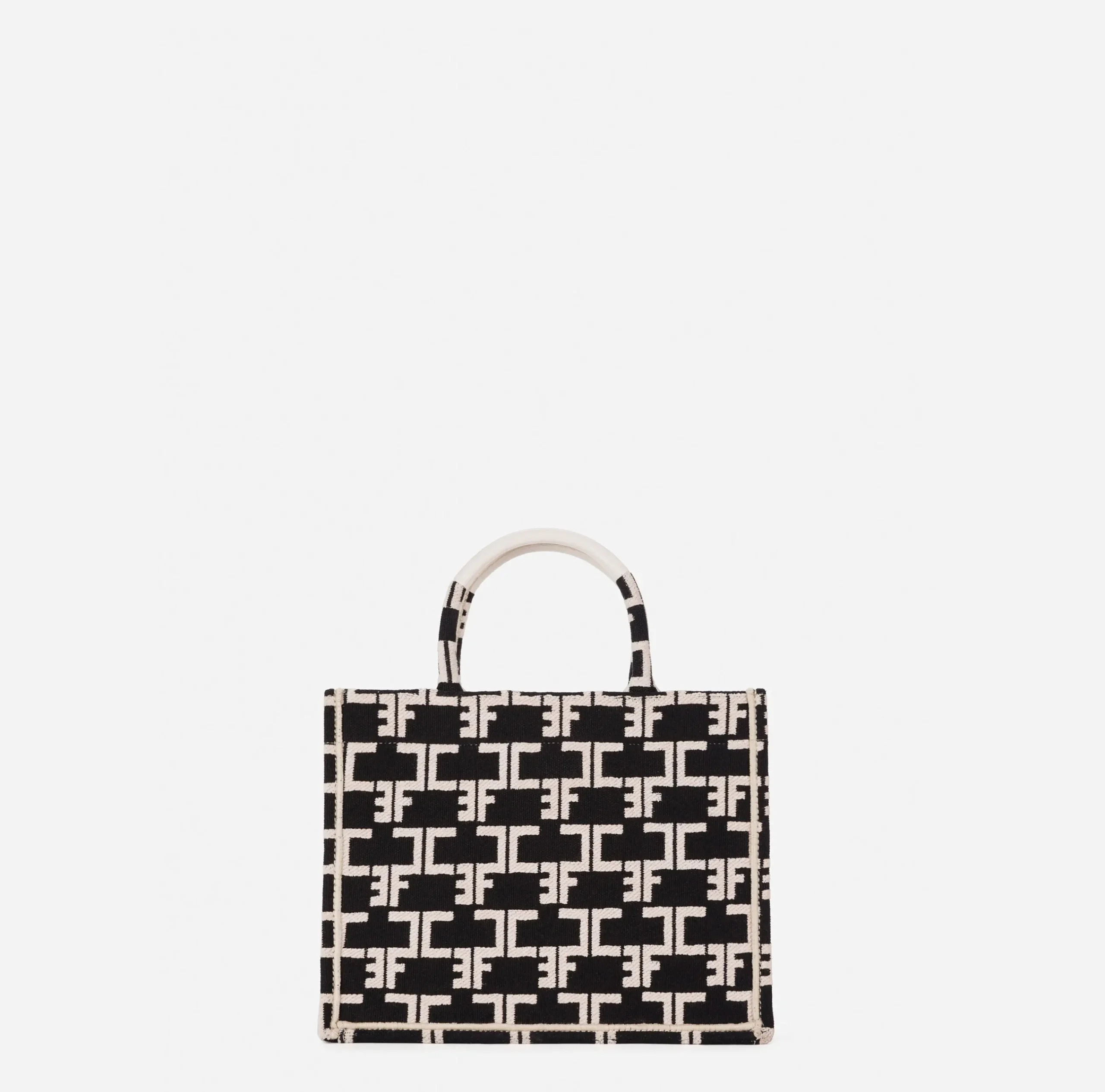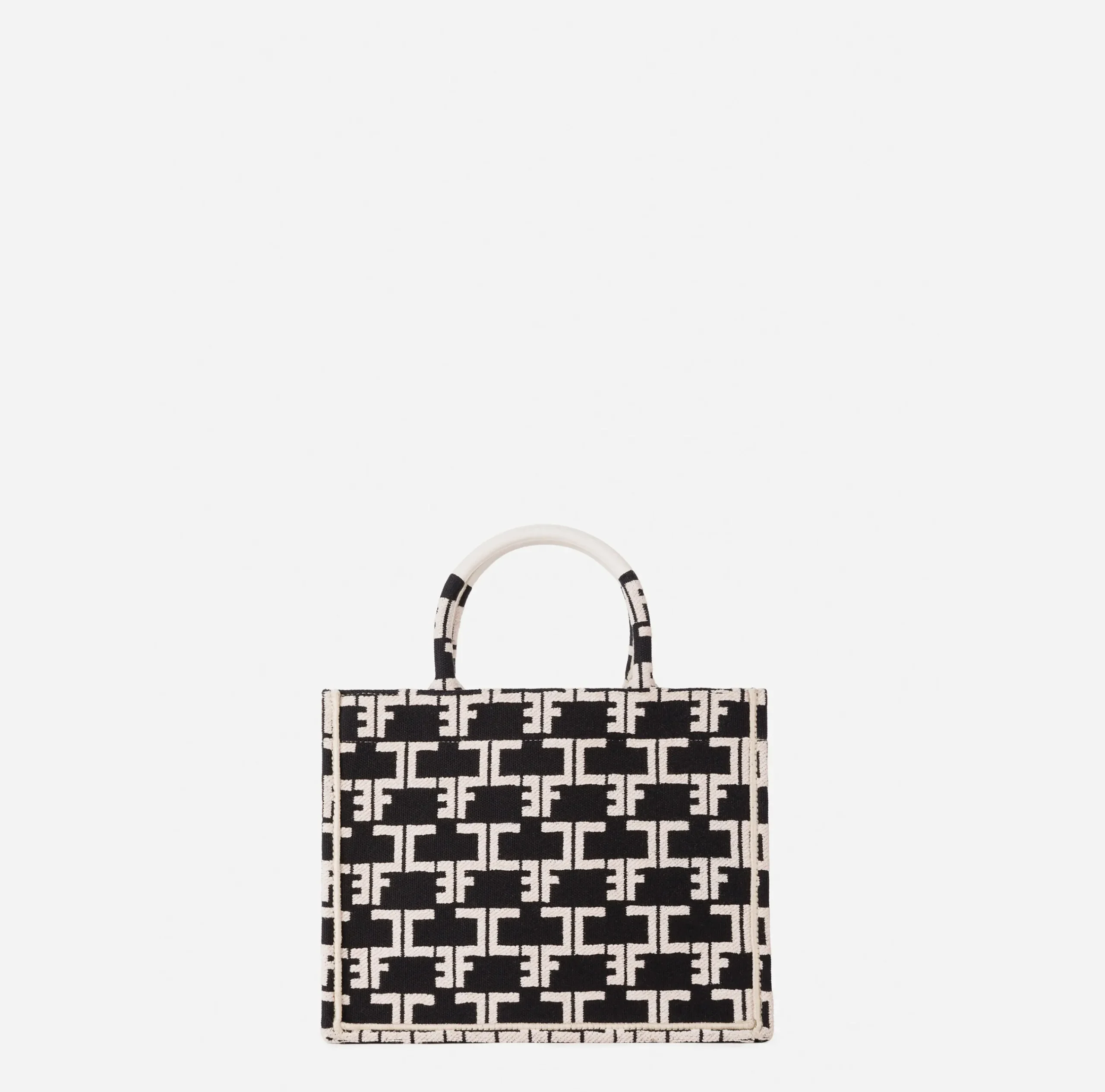 Borse A Mano|Elisabetta Franchi Monogram Tote Small Nero/Burro