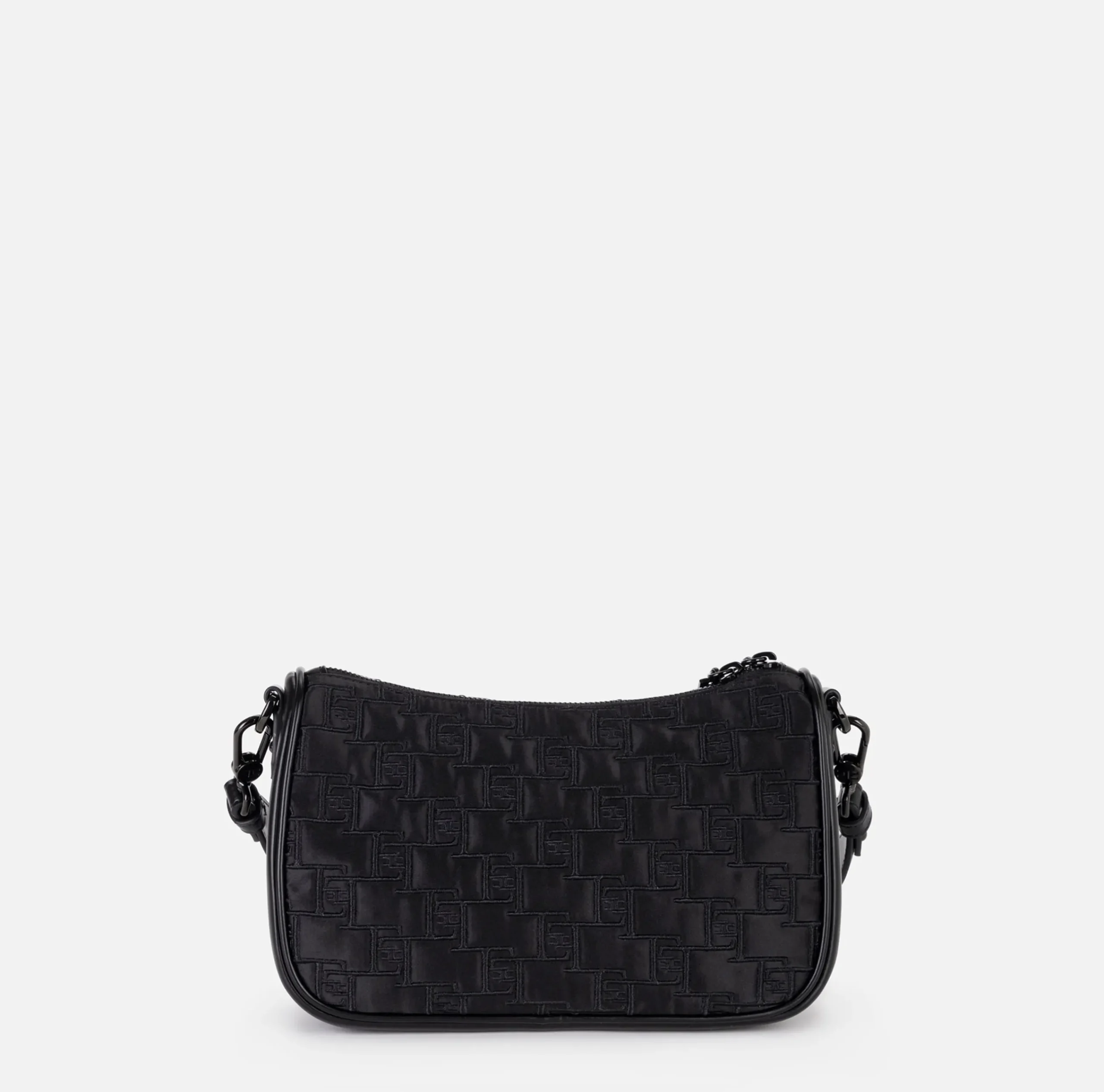 Borsa a spalla piccola in raso ricamato con logo effetto embossed. È caratterizzata da chiusura con doppia zip, tracolla removibile e patch logo sul fronte.