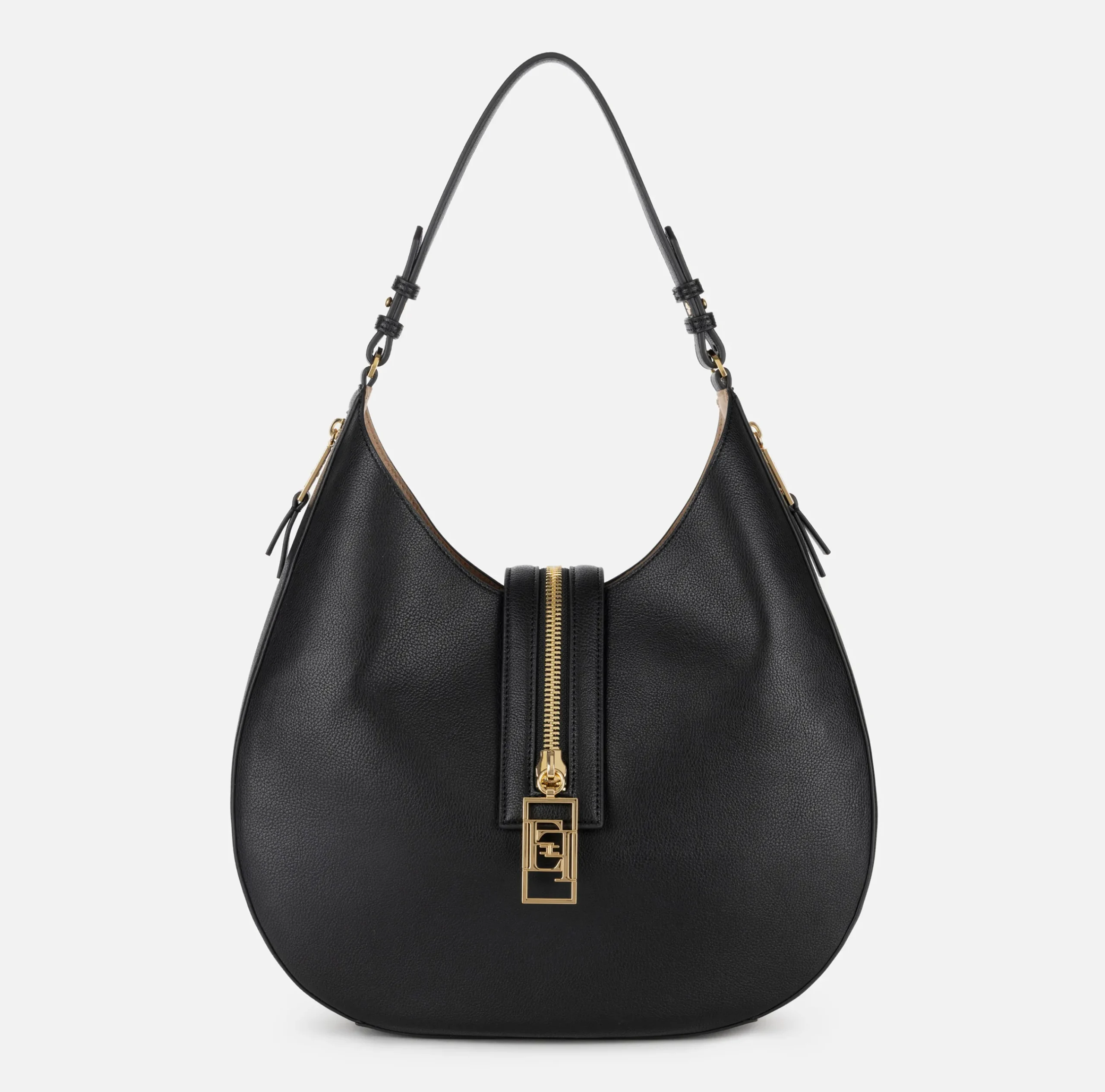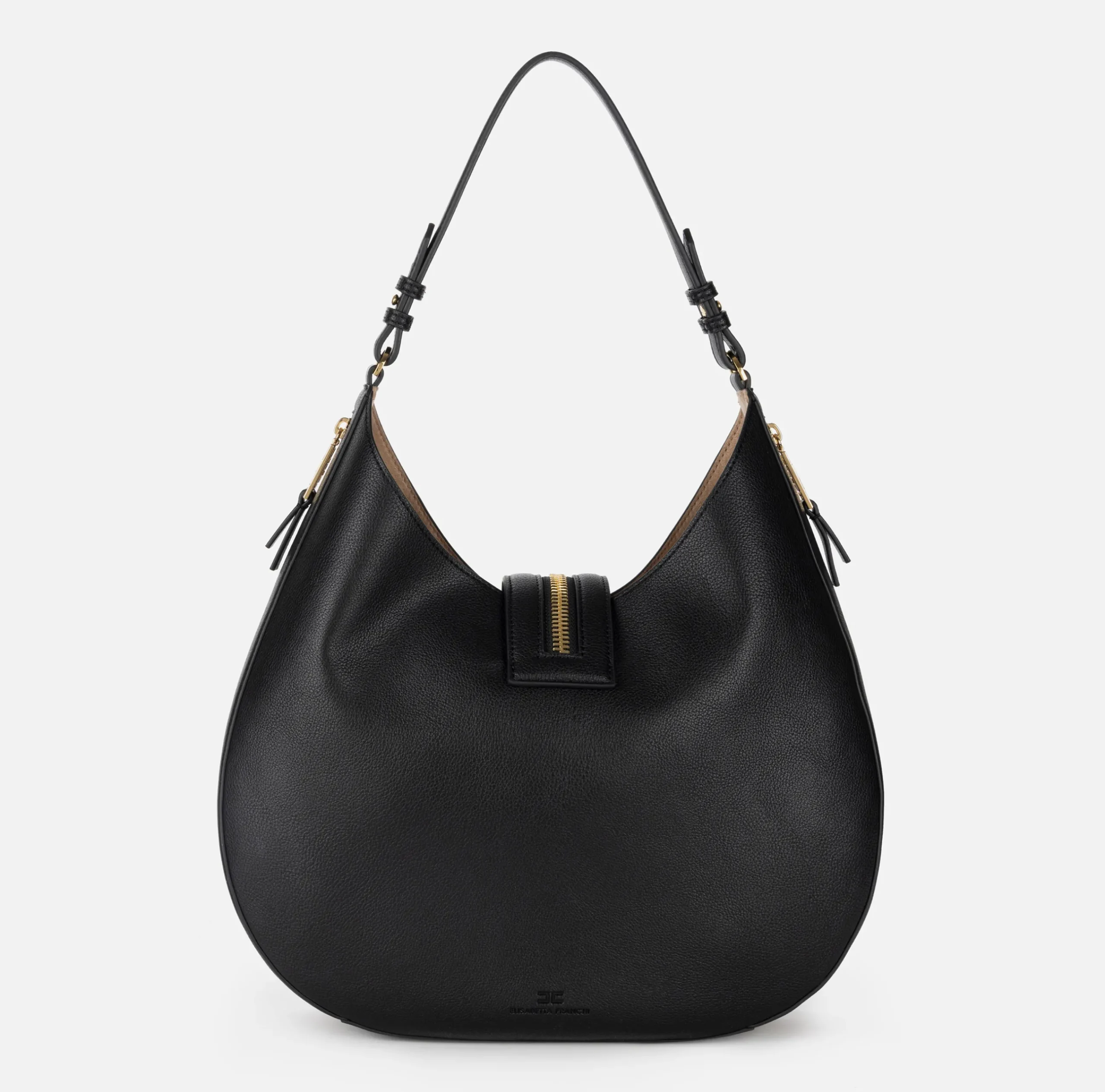 Borse A Spalla|Elisabetta Franchi Borsa hobo grande in materiale effetto pelle con zip Nero