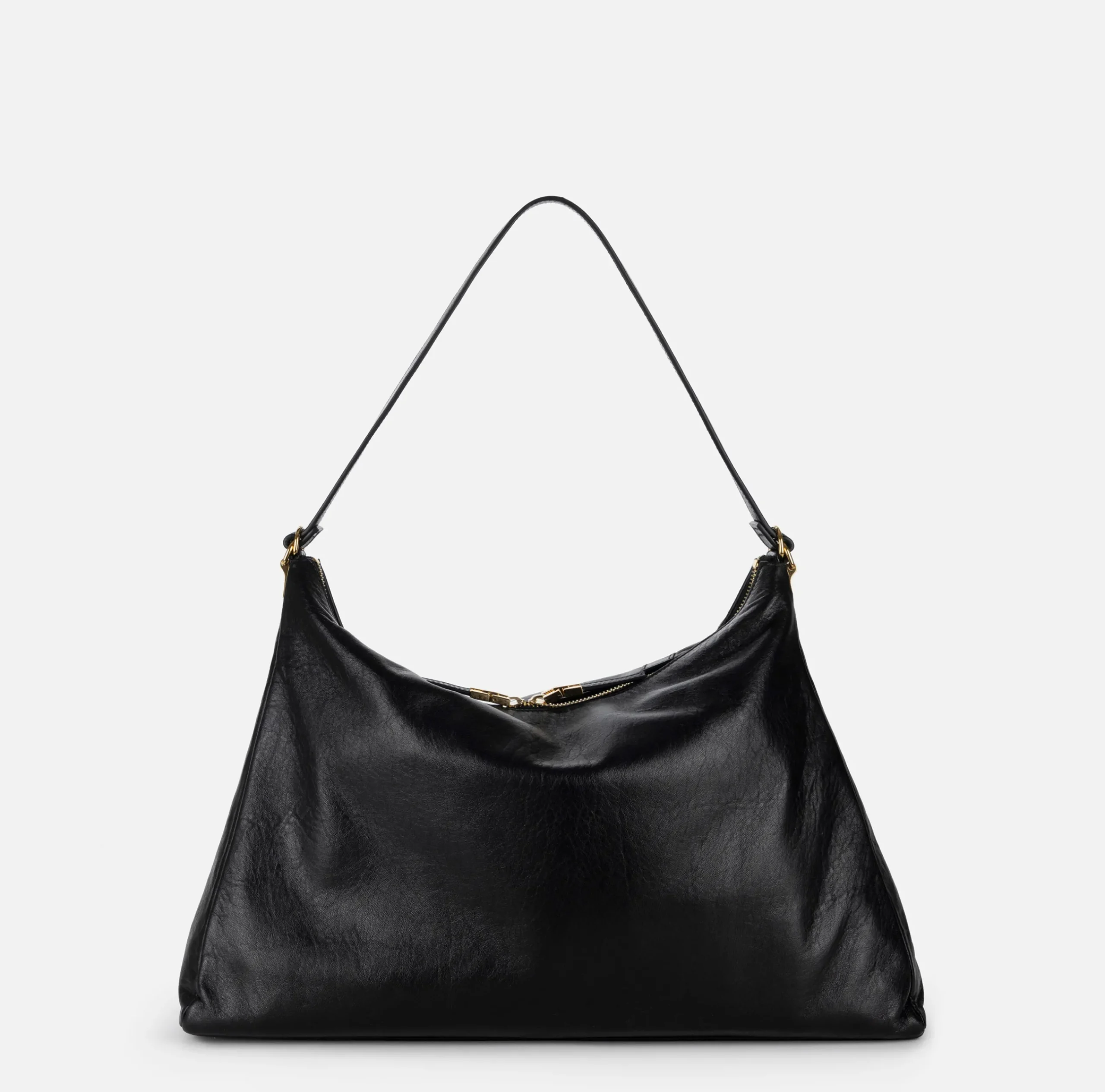 Borsa hobo in nappa lucida. È caratterizzata da fibbie in metallo dorato.