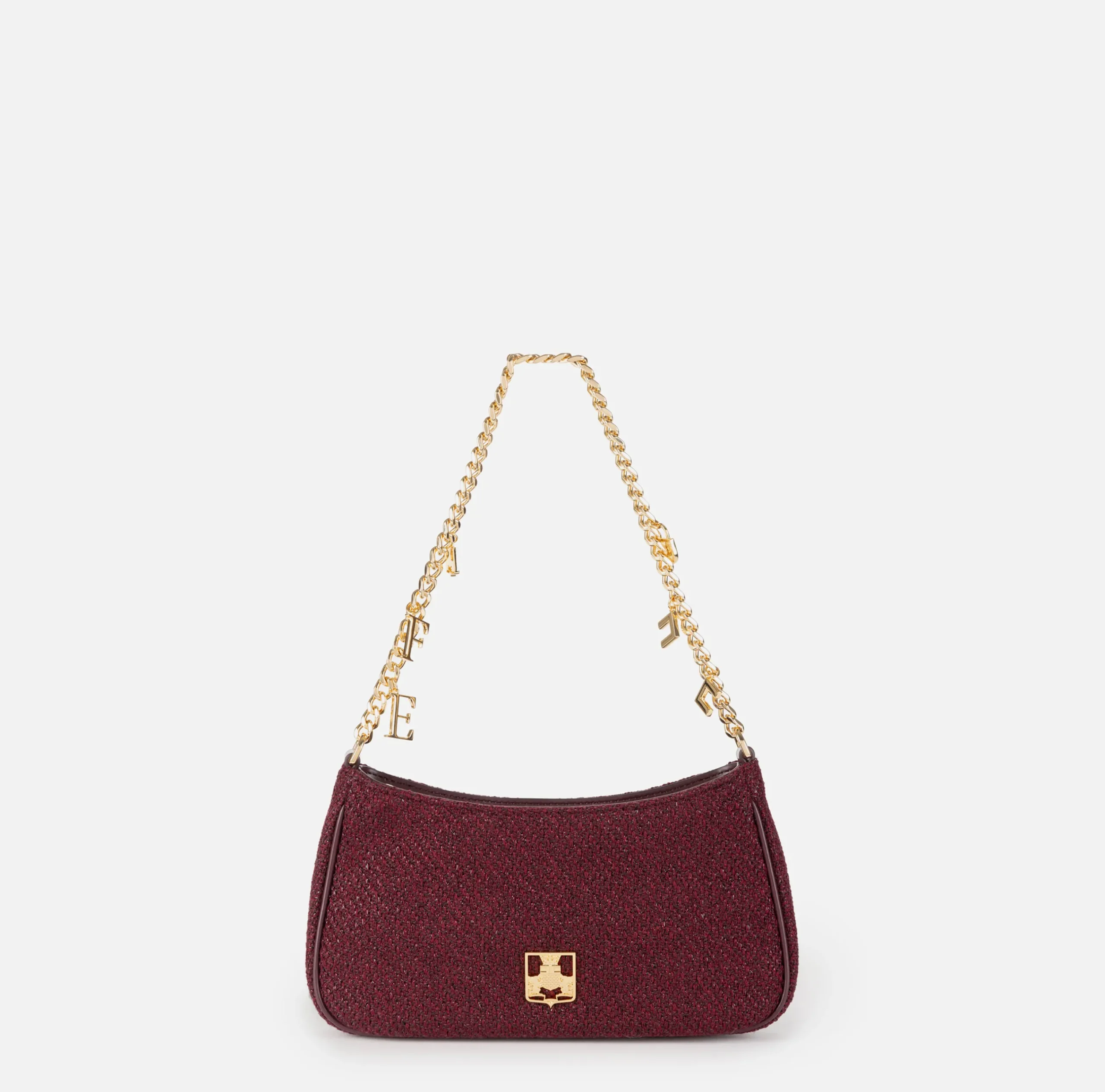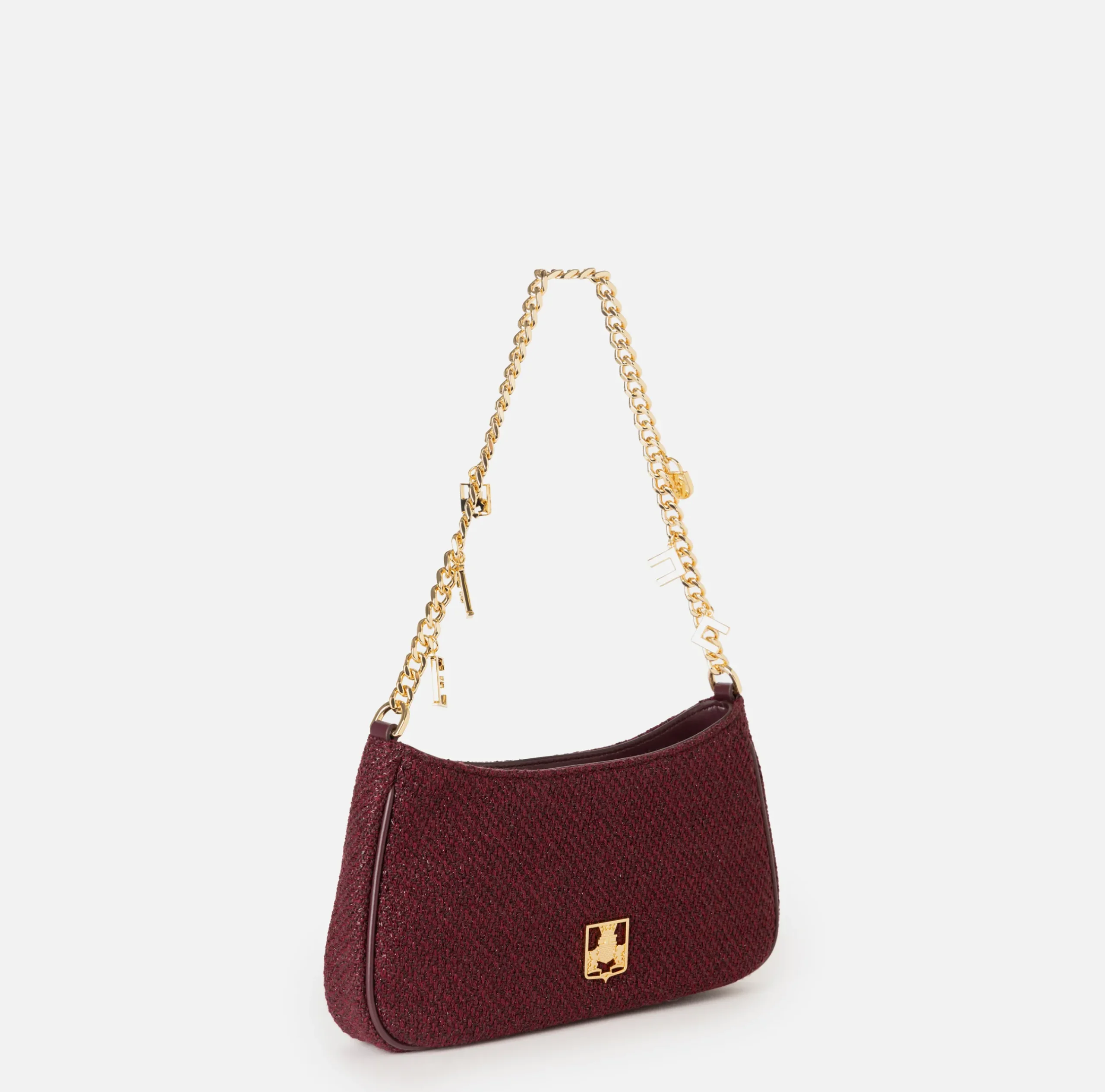 Borse A Spalla|Elisabetta Franchi Borsa hobo in tessuto con tracolla charms RougeNoir
