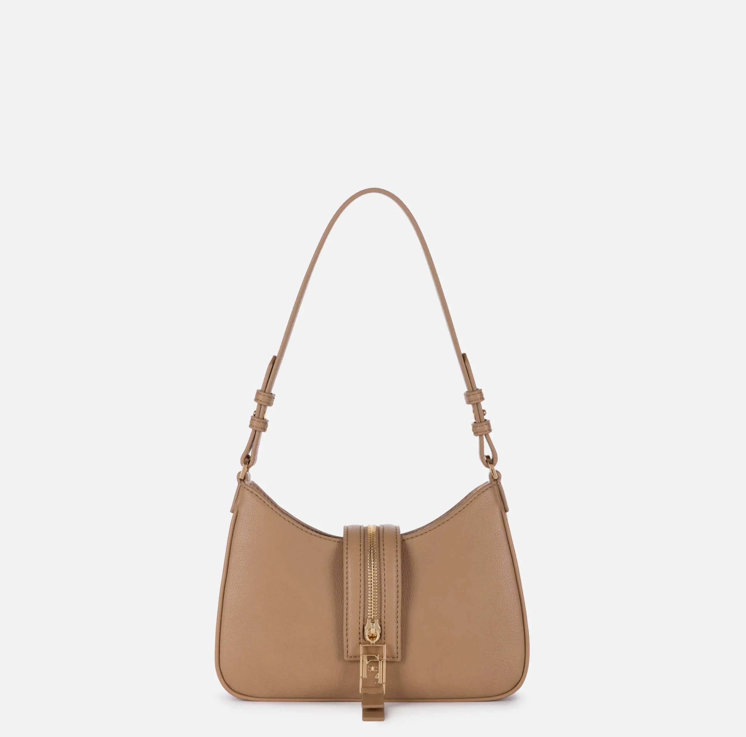 Borse A Spalla|Elisabetta Franchi Borsa hobo piccola in materiale effetto pelle con zip Camel