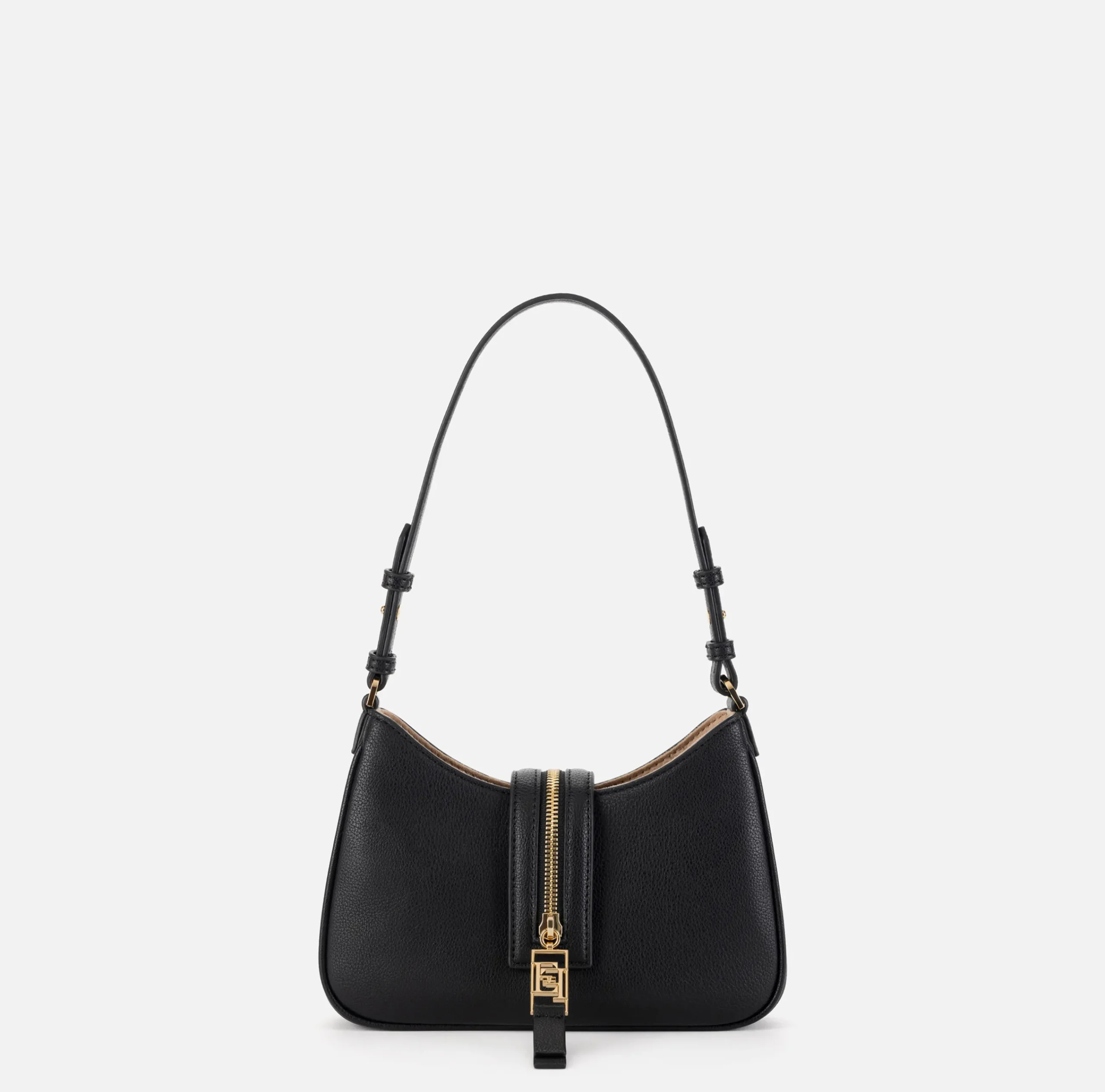 Borse A Spalla|Elisabetta Franchi Borsa hobo piccola in materiale effetto pelle con zip Nero