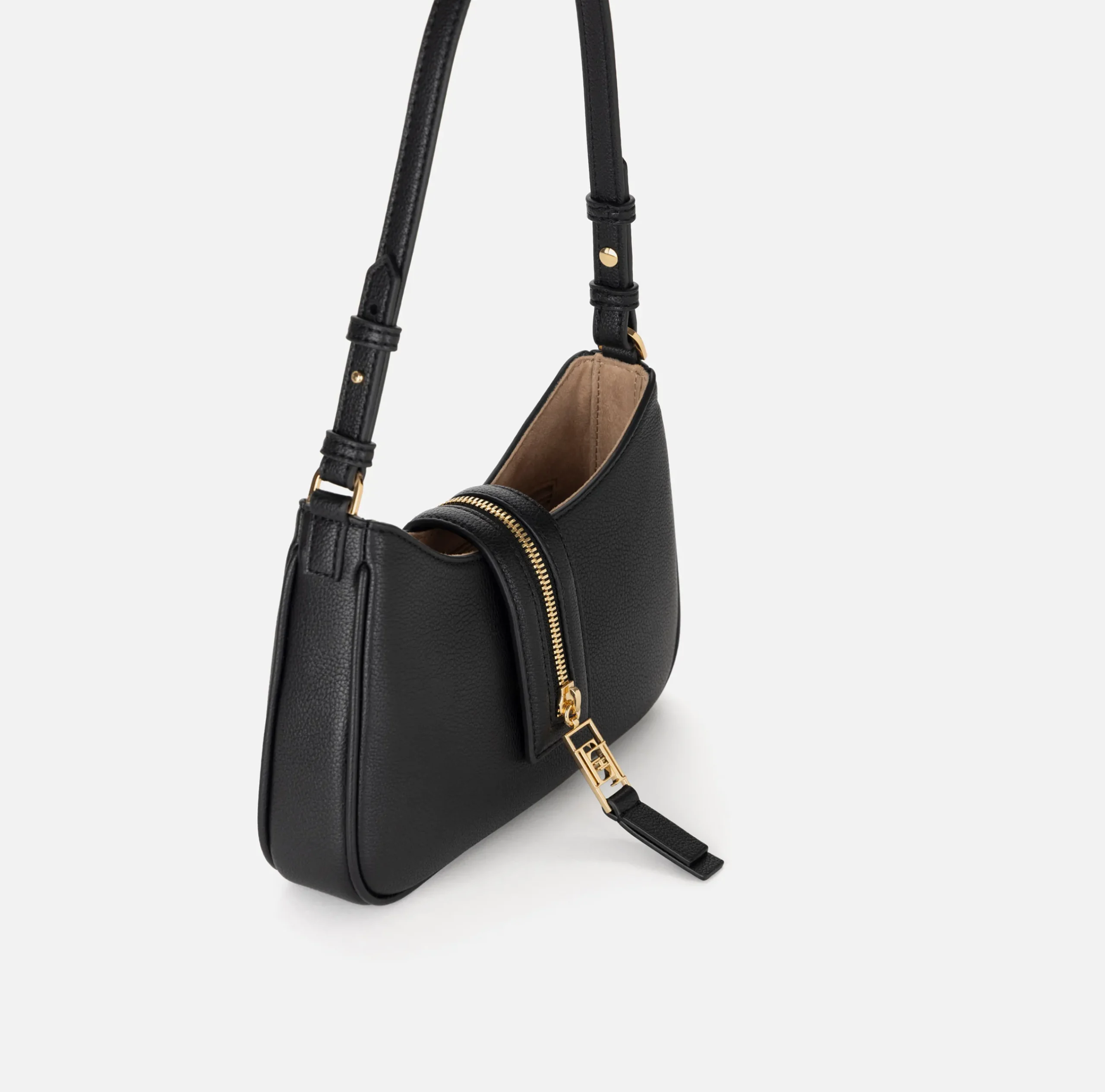 Borsa hobo piccola in materiale sintetico effetto pelle. È caratterizzata da cerniera rifinita da tirazip logato in metallo dorato.