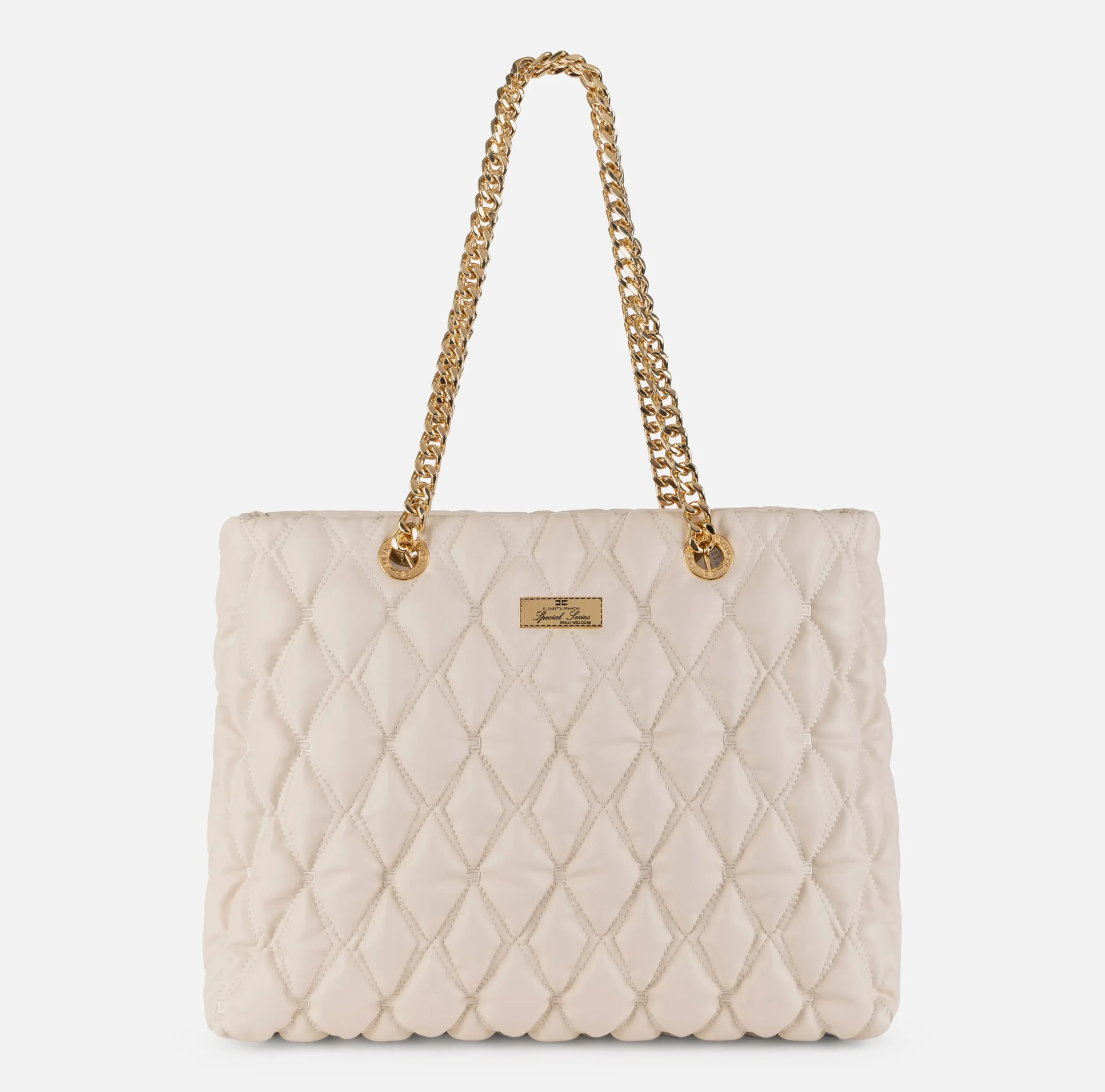 Be the first to review “Borse A Spalla|Elisabetta Franchi Shopper in tessuto embossed con manici in catena Lattice” Annulla risposta