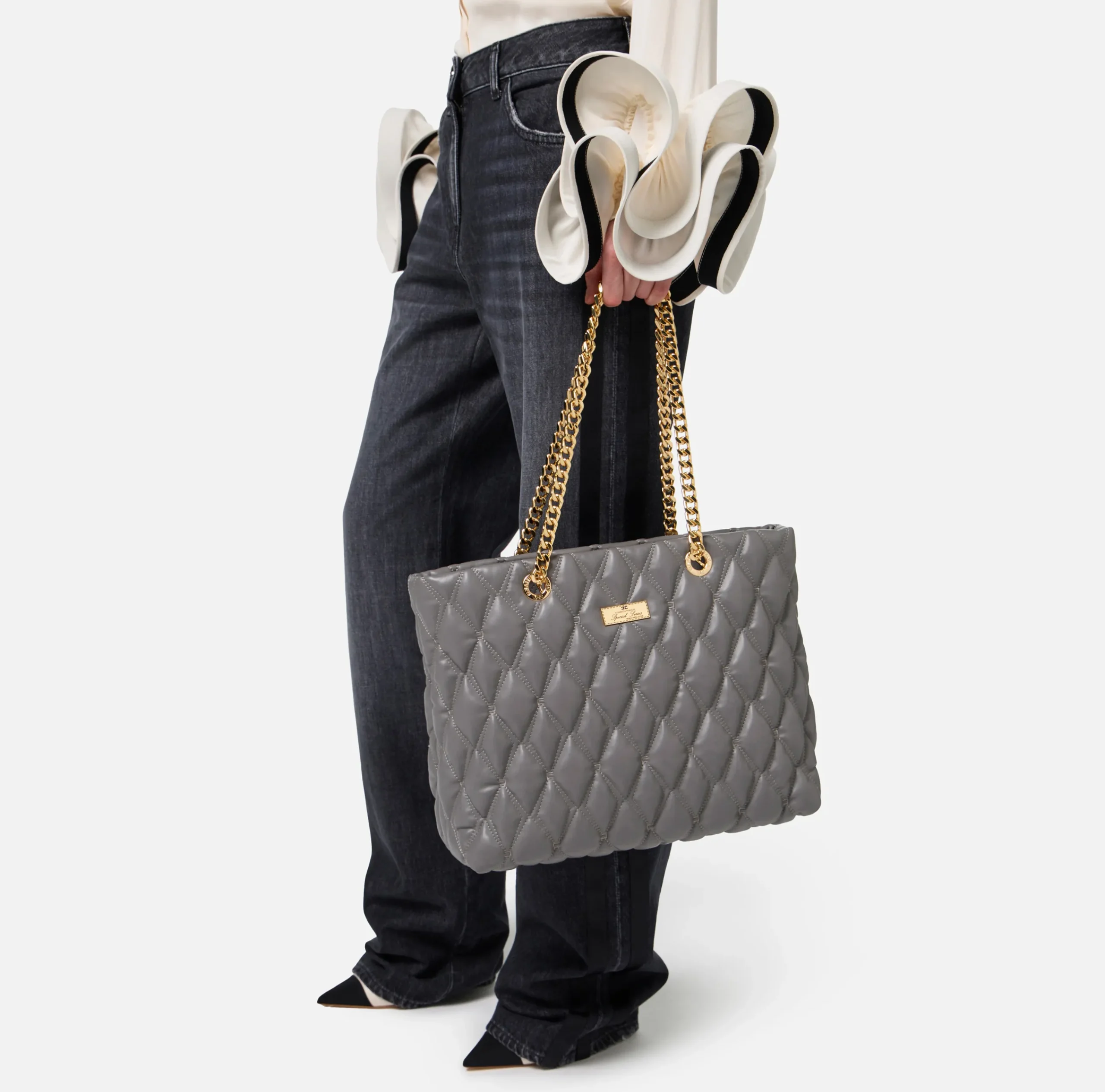 Be the first to review “Borse A Spalla|Elisabetta Franchi Shopper in tessuto embossed con manici in catena Steel” Annulla risposta