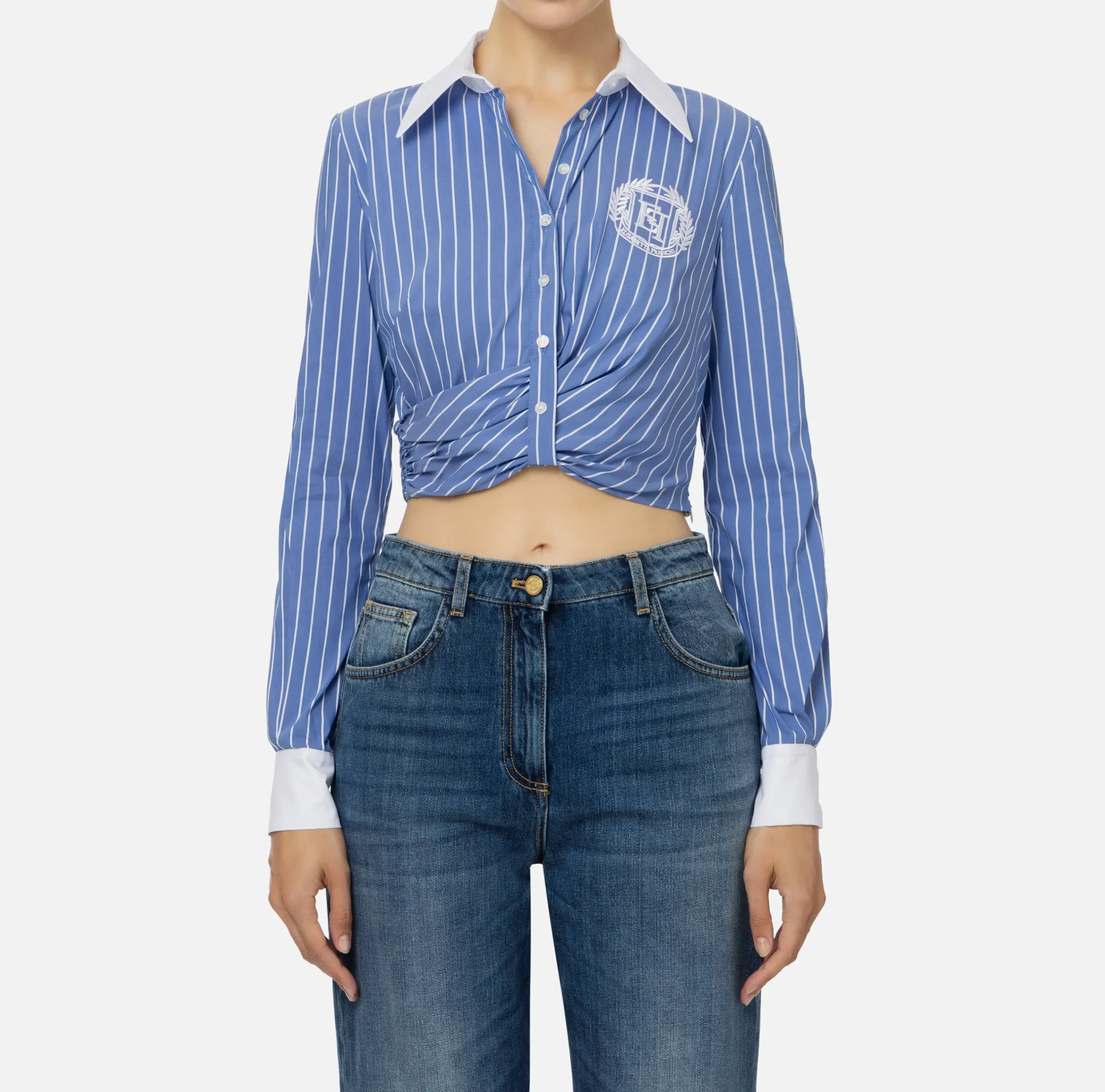 Be the first to review “Camicie E Bluse|Elisabetta Franchi Camicia cropped in popeline rigato con drappeggio Navy/Bianco” Annulla risposta