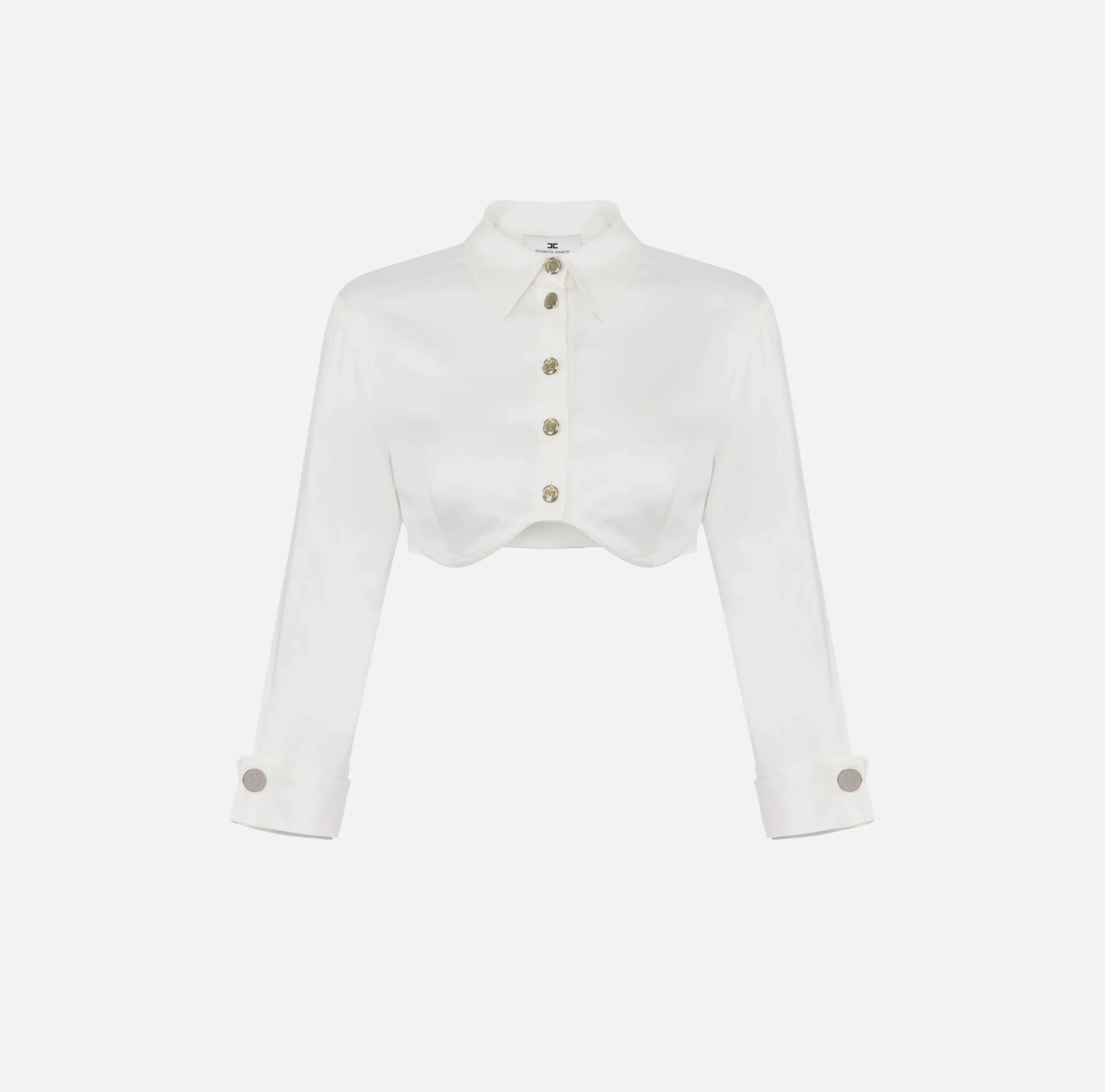 Be the first to review “Camicie E Bluse|Elisabetta Franchi Camicia cropped in raso con taglio coppe Bianco” Annulla risposta