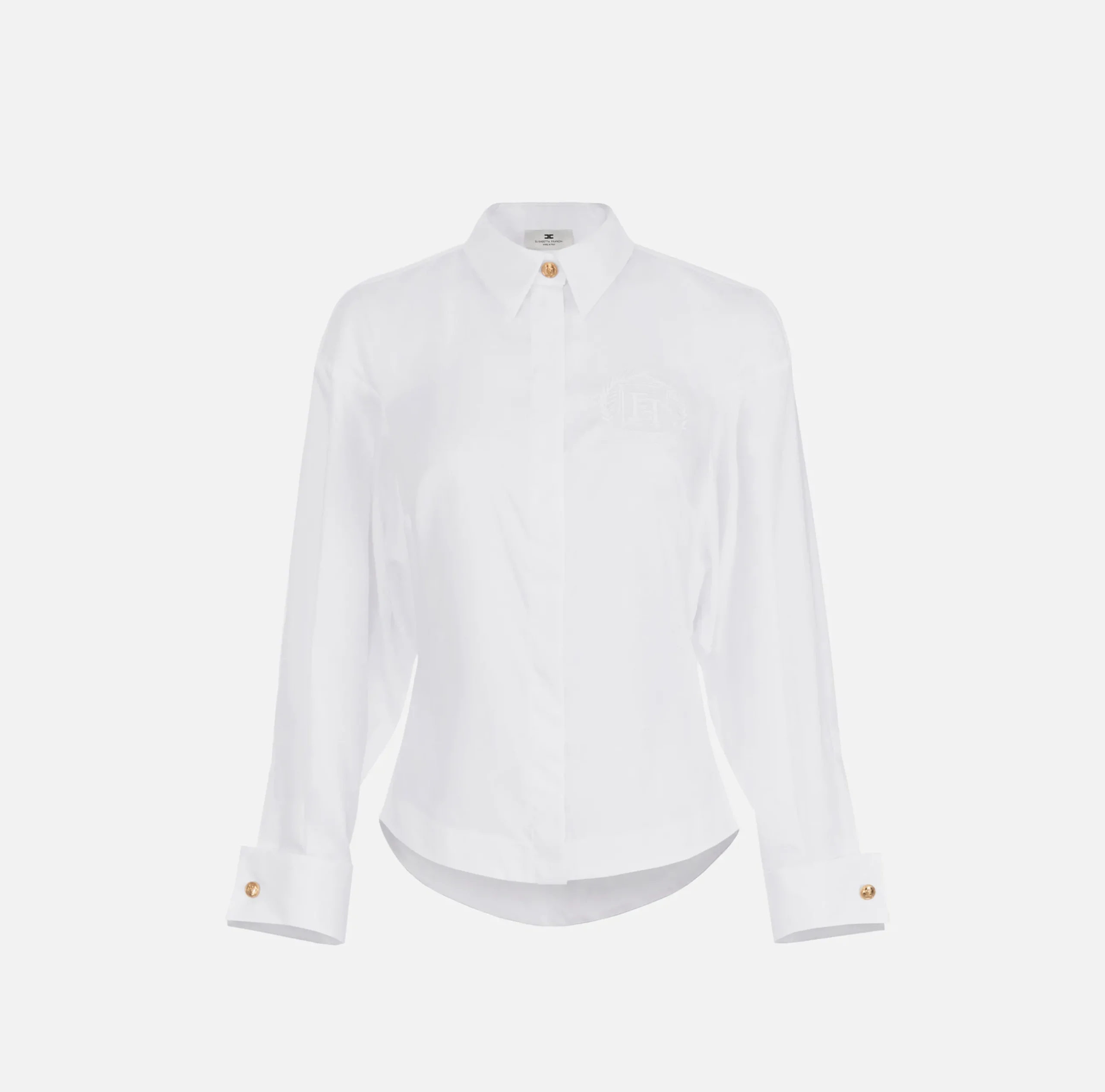 Be the first to review “Camicie E Bluse|Elisabetta Franchi Camicia in popeline di cotone con arricciatura e stemma logo Bianco” Annulla risposta