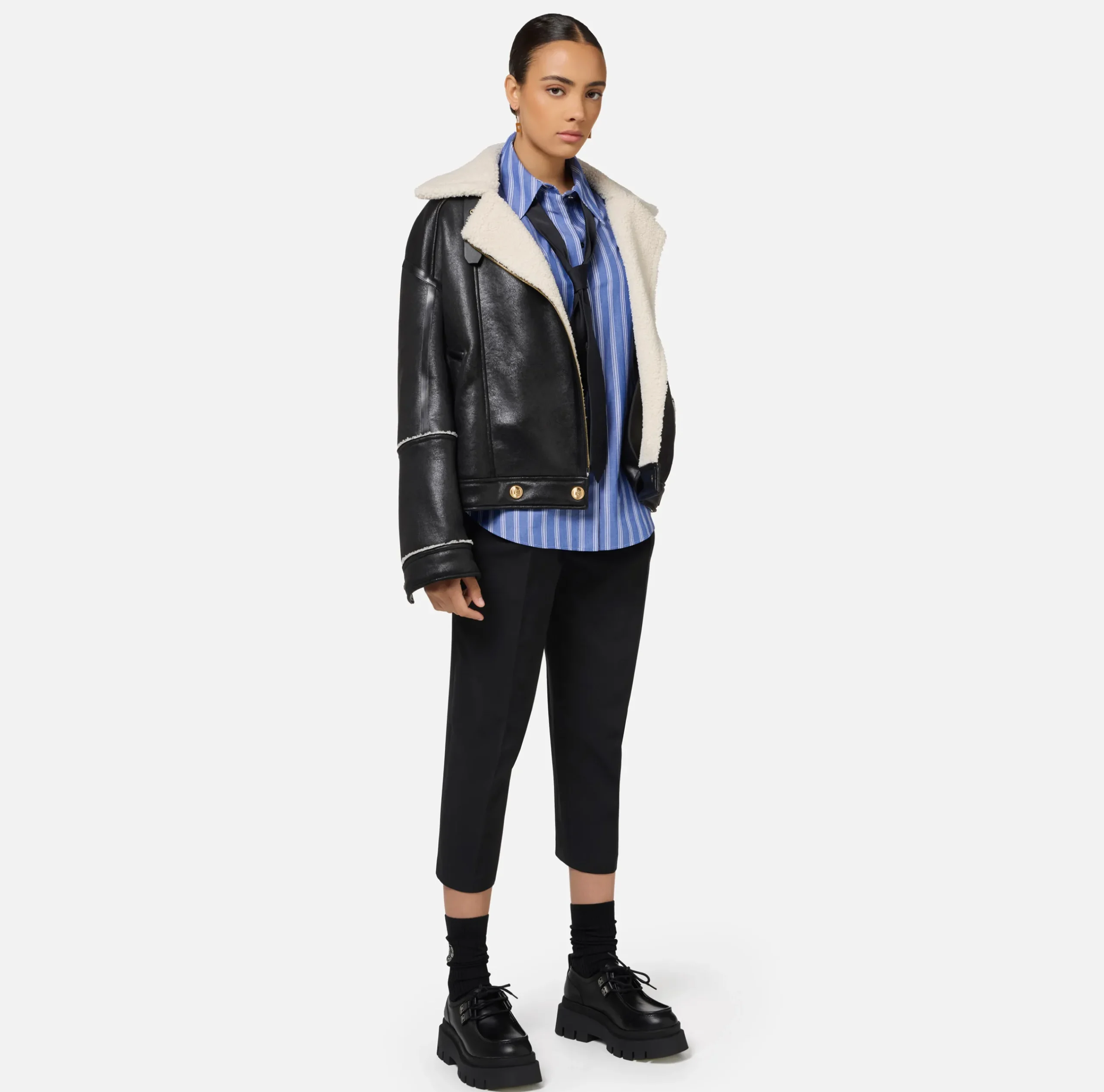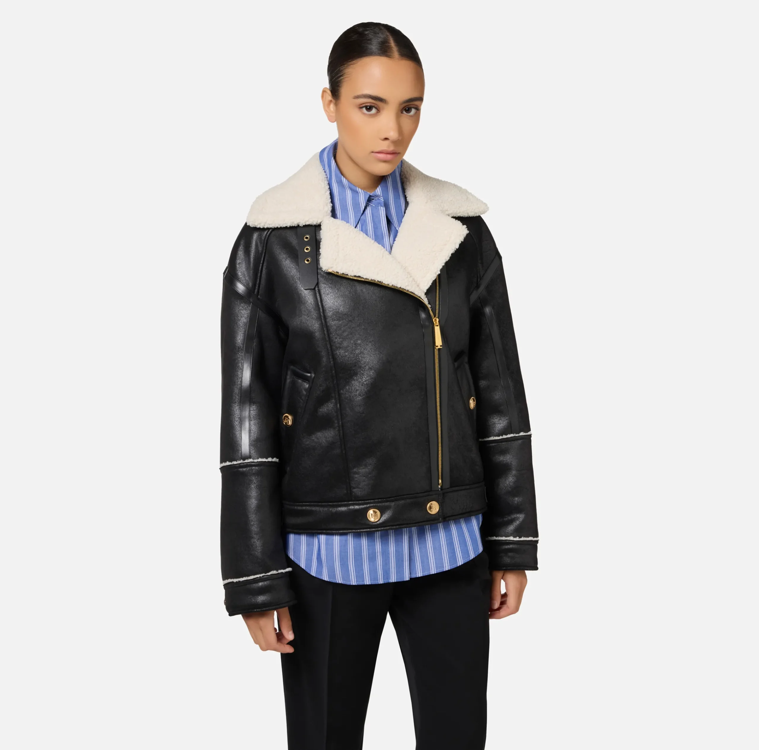 Be the first to review “Capispalla|Elisabetta Franchi Giacca aviatore effetto pelle Nero” Annulla risposta