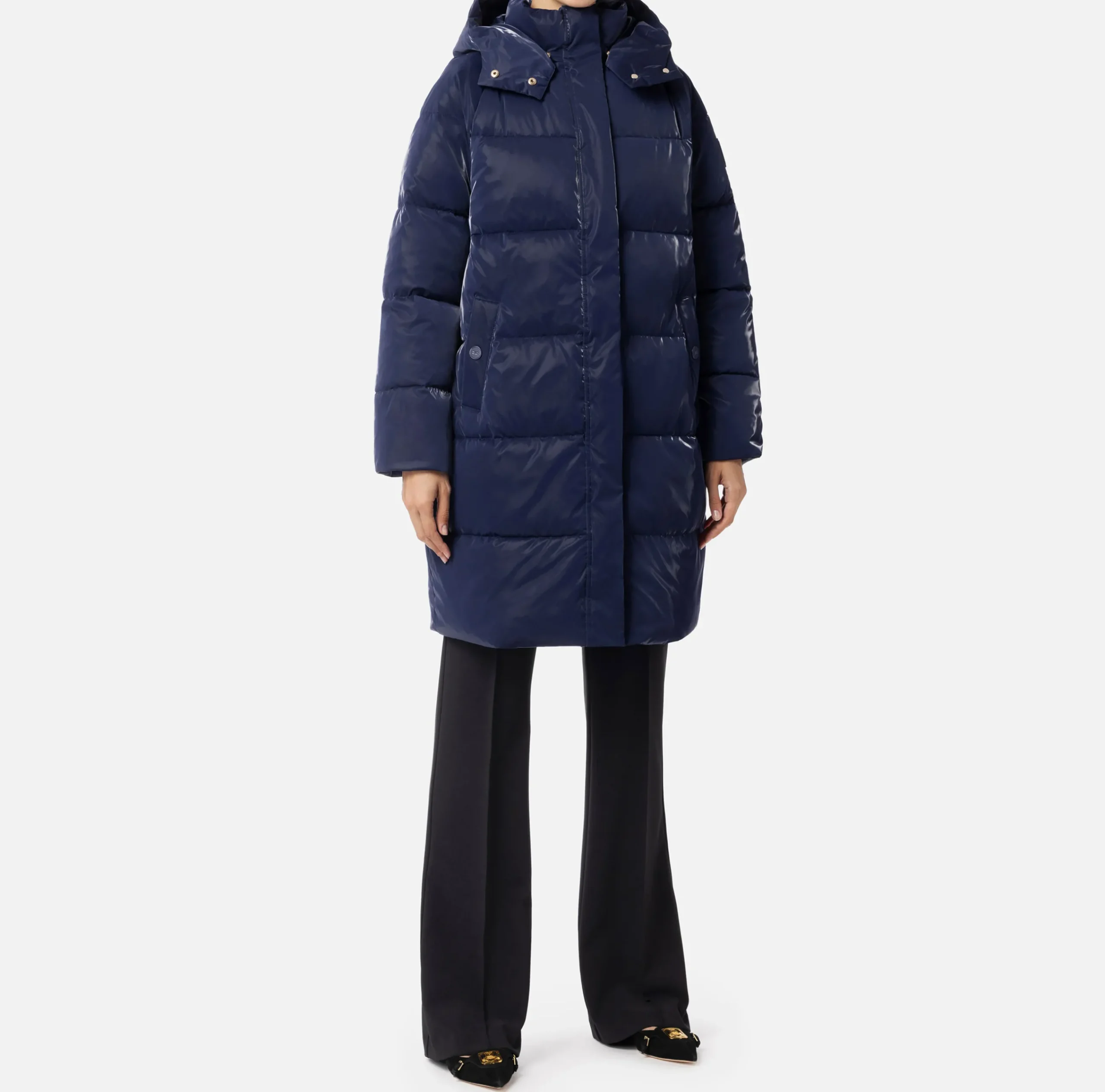Capispalla|Elisabetta Franchi Piumino lungo in nylon satin con cappuccio Navy