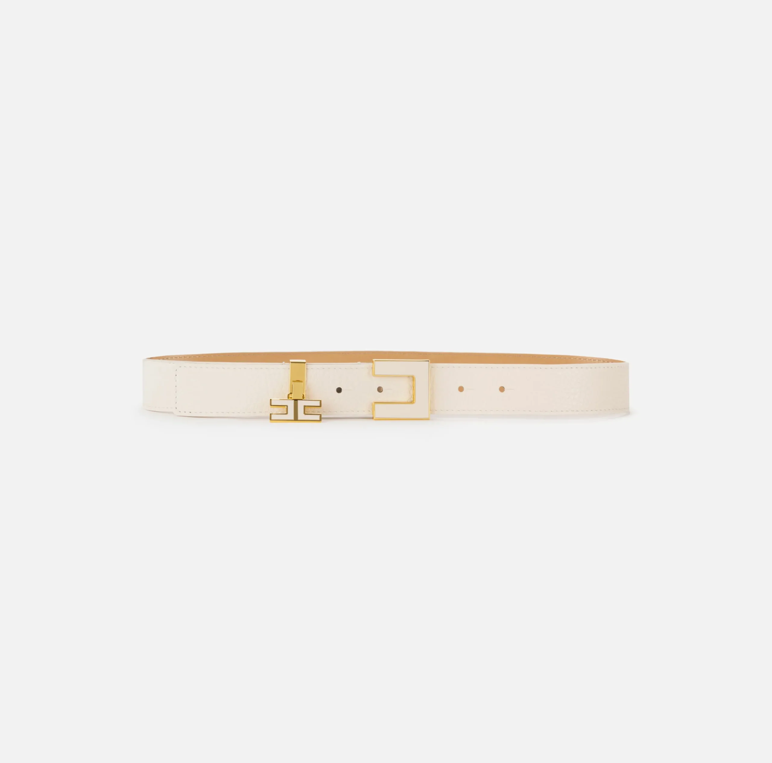 Cinture|Elisabetta Franchi Cintura in pelle con fibbia e charms logo smaltato Burro
