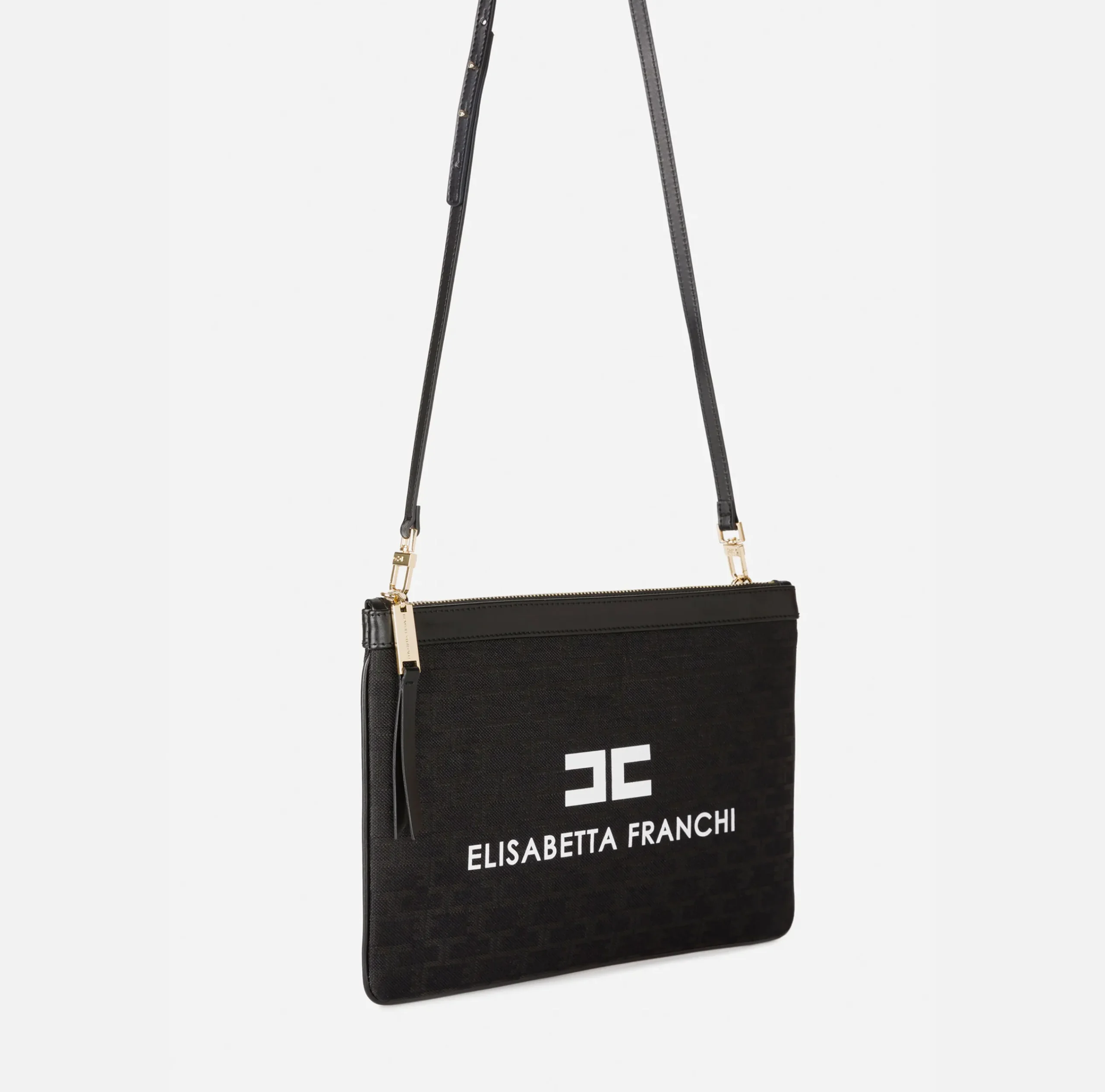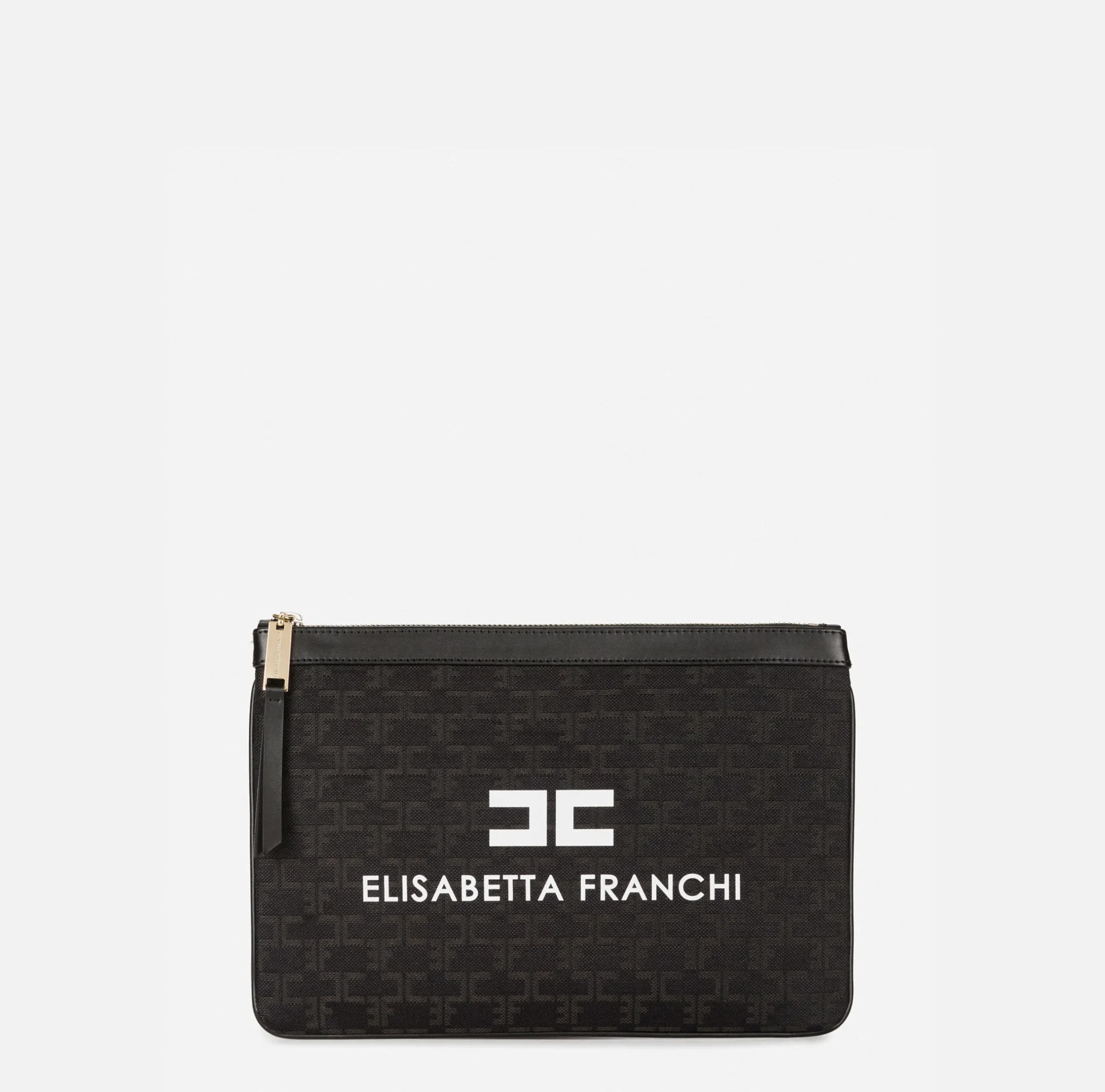 Clutch|Elisabetta Franchi Mini Trousse Monogram Nero
