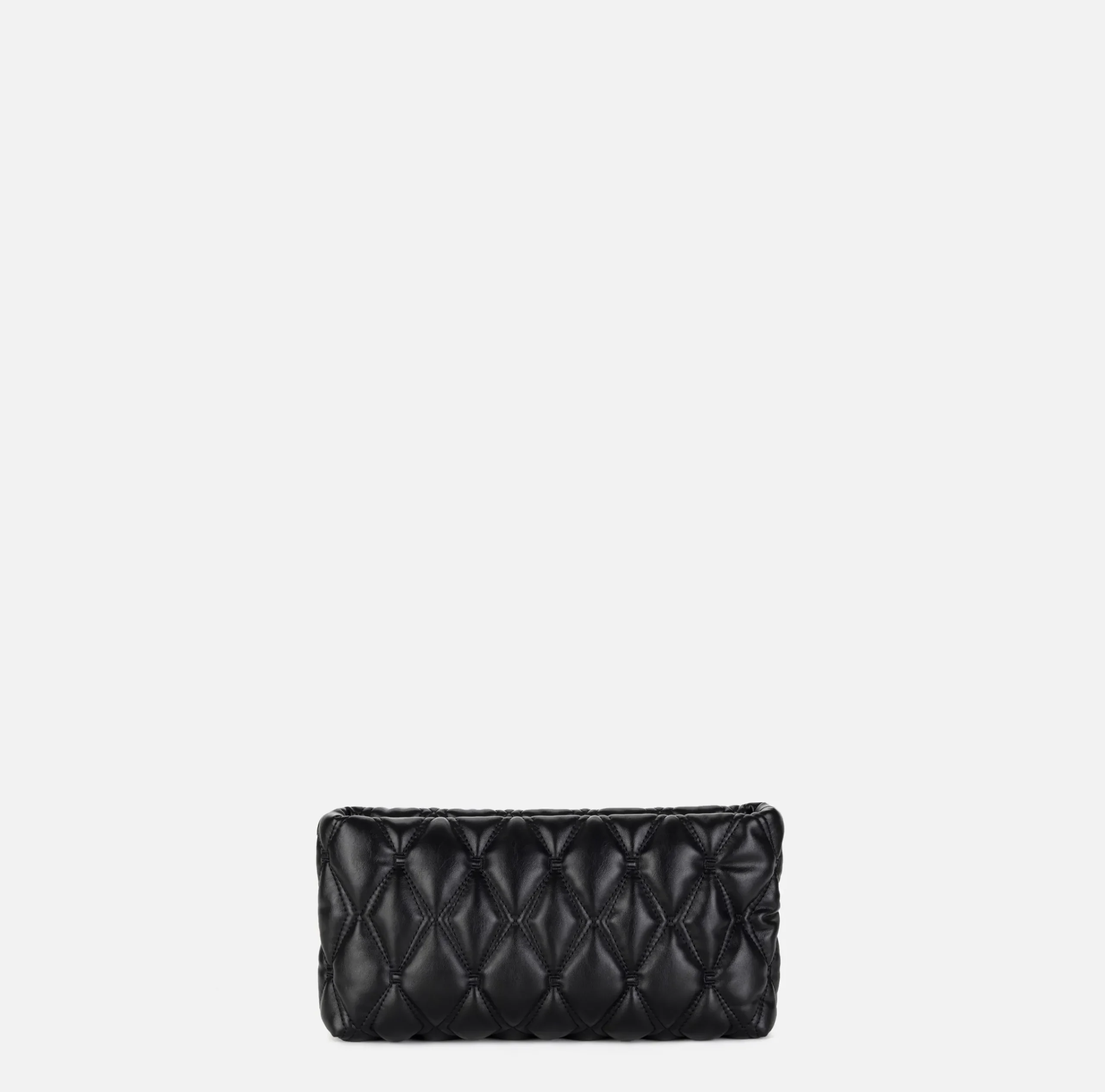 Pochette in tessuto di collezione con lavorazione embossed. È caratterizzata da placca logo in metallo dorato.