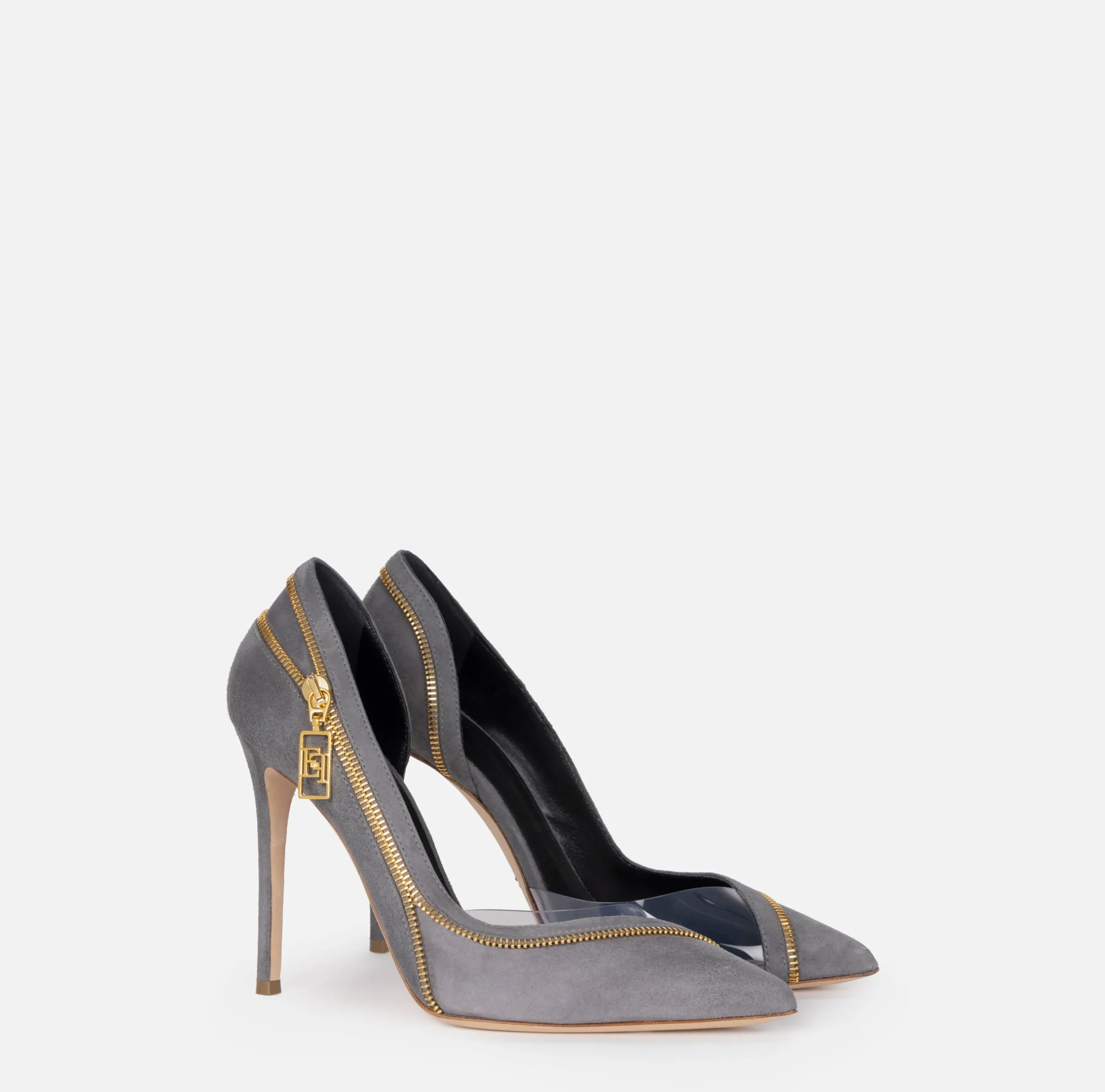 Décolleté|Elisabetta Franchi Décolleté in camoscio con zip Steel