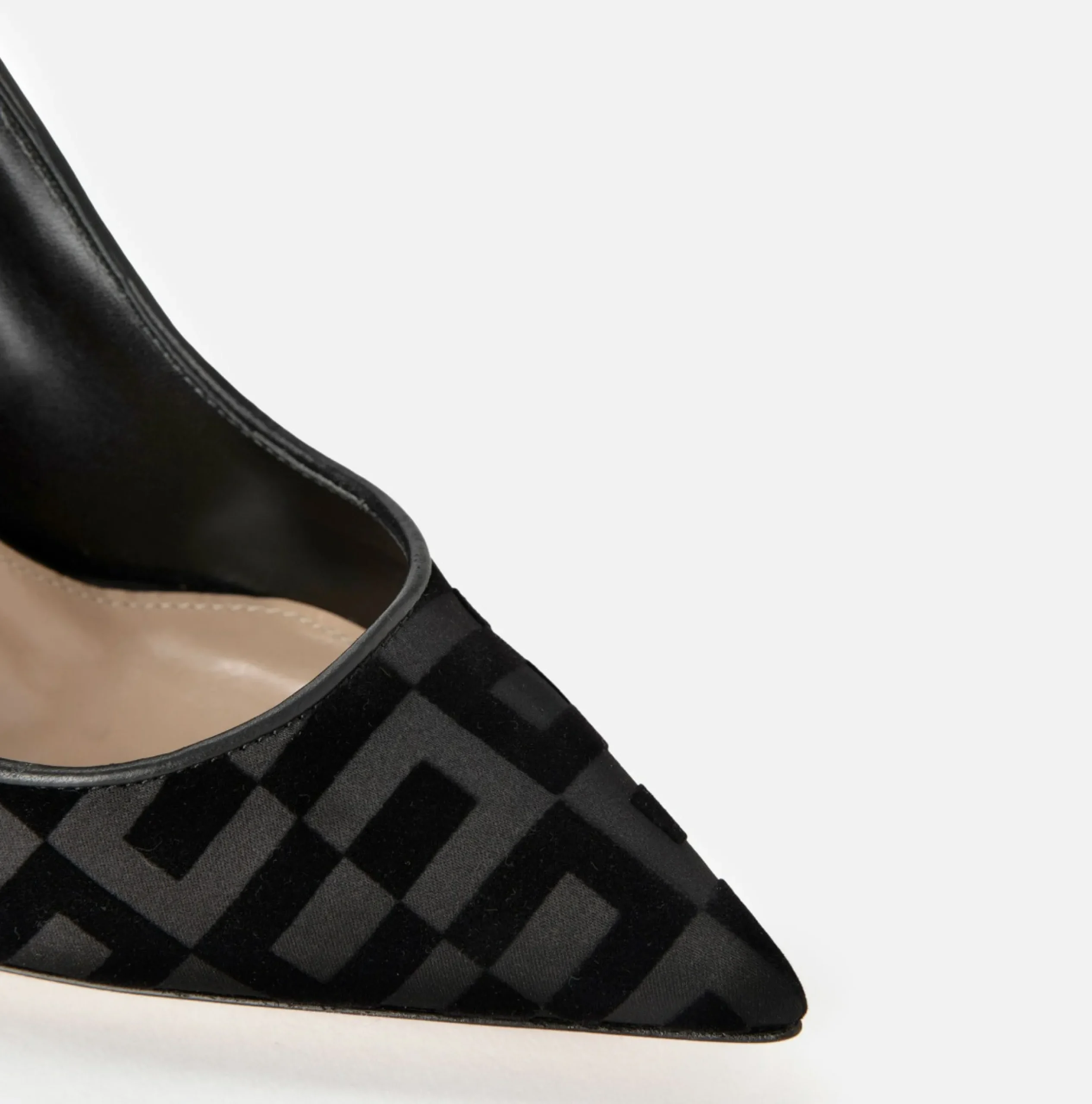 La nuova décolleté iconica ELISABETTA FRANCHI in tessuto su tacco a stiletto è liberamente ispirata a uno dei giochi da tavolo più famosi al mondo: La Dama. Come nella scacchiera del gioco, anche la scarpa è caratterizzata dallo stesso motivo geometrico a quadri, costruito con il logo che si alterna con un effetto di lucido e opaco. Il dettaglio del logo in oro impreziosisce gli articoli conferendole un allure sofisticato e ricercato.