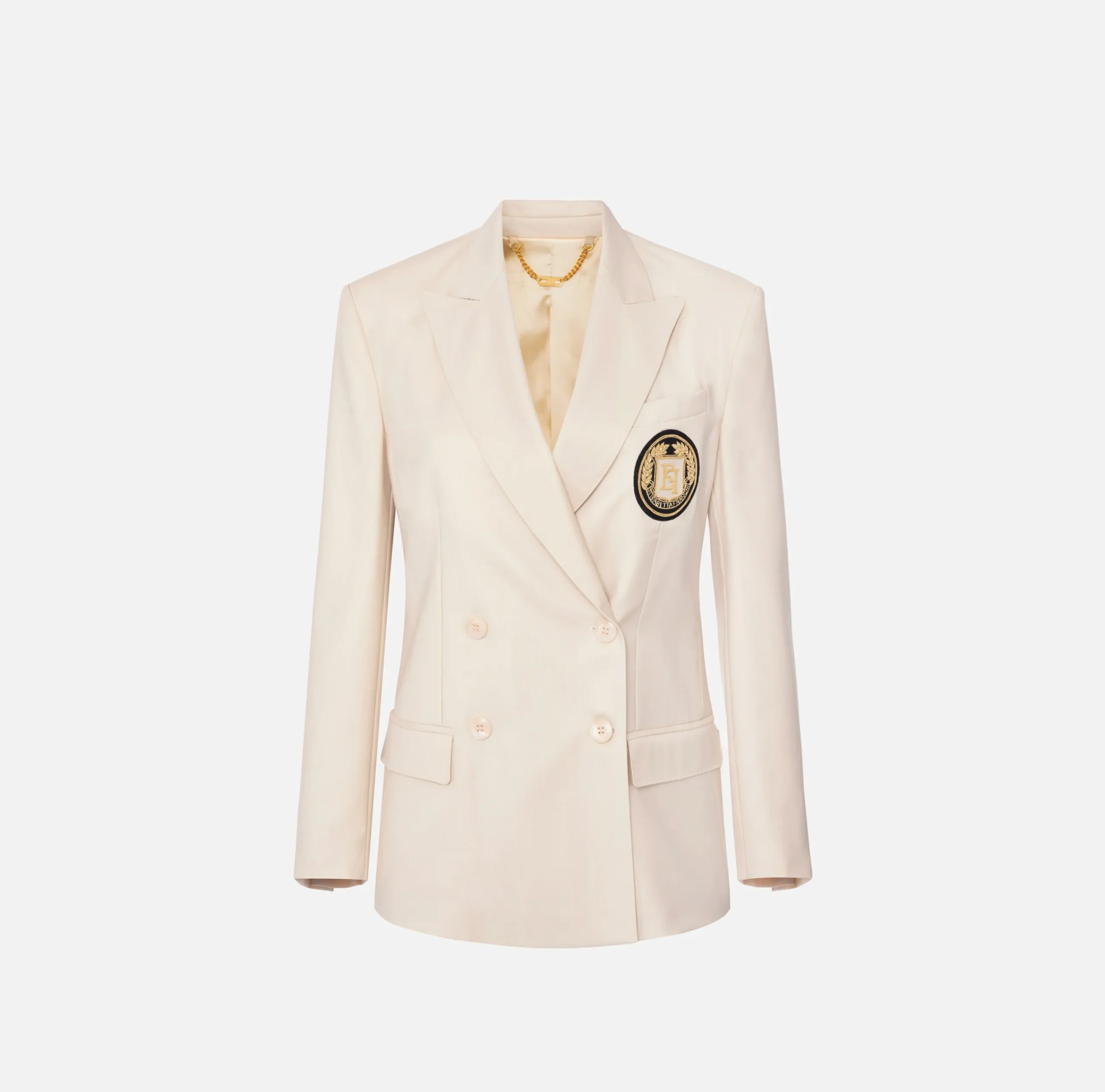 Giacche & Trench|Elisabetta Franchi Giacca doppiopetto in fresco di lana con patch Crema