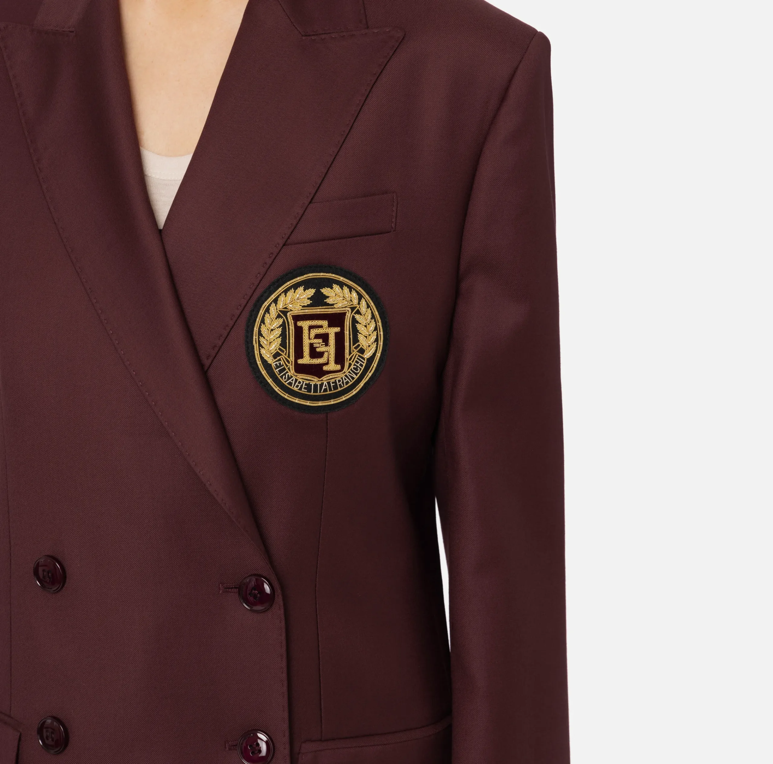 Be the first to review “Giacche & Trench|Elisabetta Franchi Giacca doppiopetto in fresco di lana con patch RougeNoir” Annulla risposta