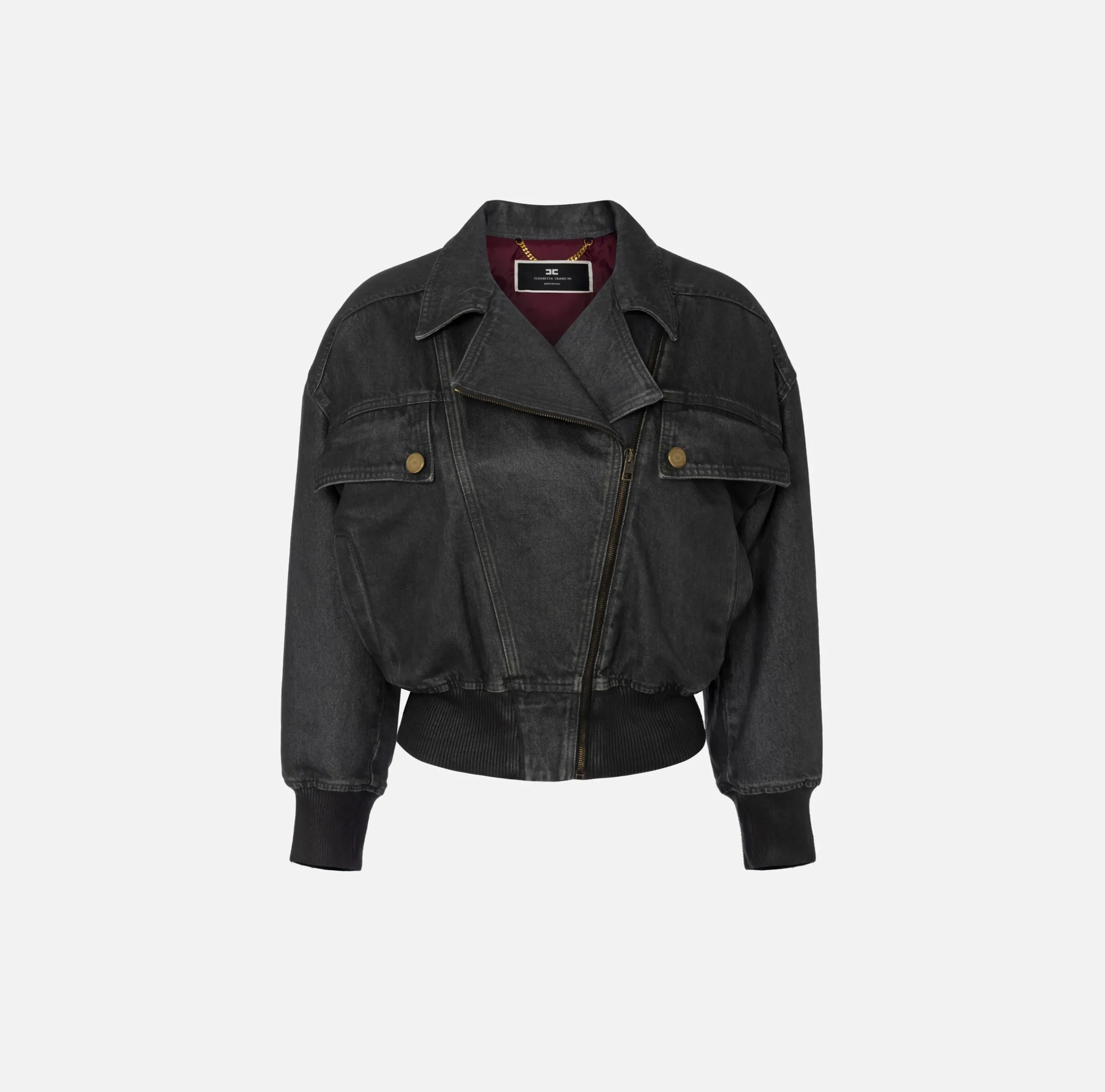 Be the first to review “Giacche & Trench|Elisabetta Franchi Giubbotto in denim craquelé lucido Steel” Annulla risposta