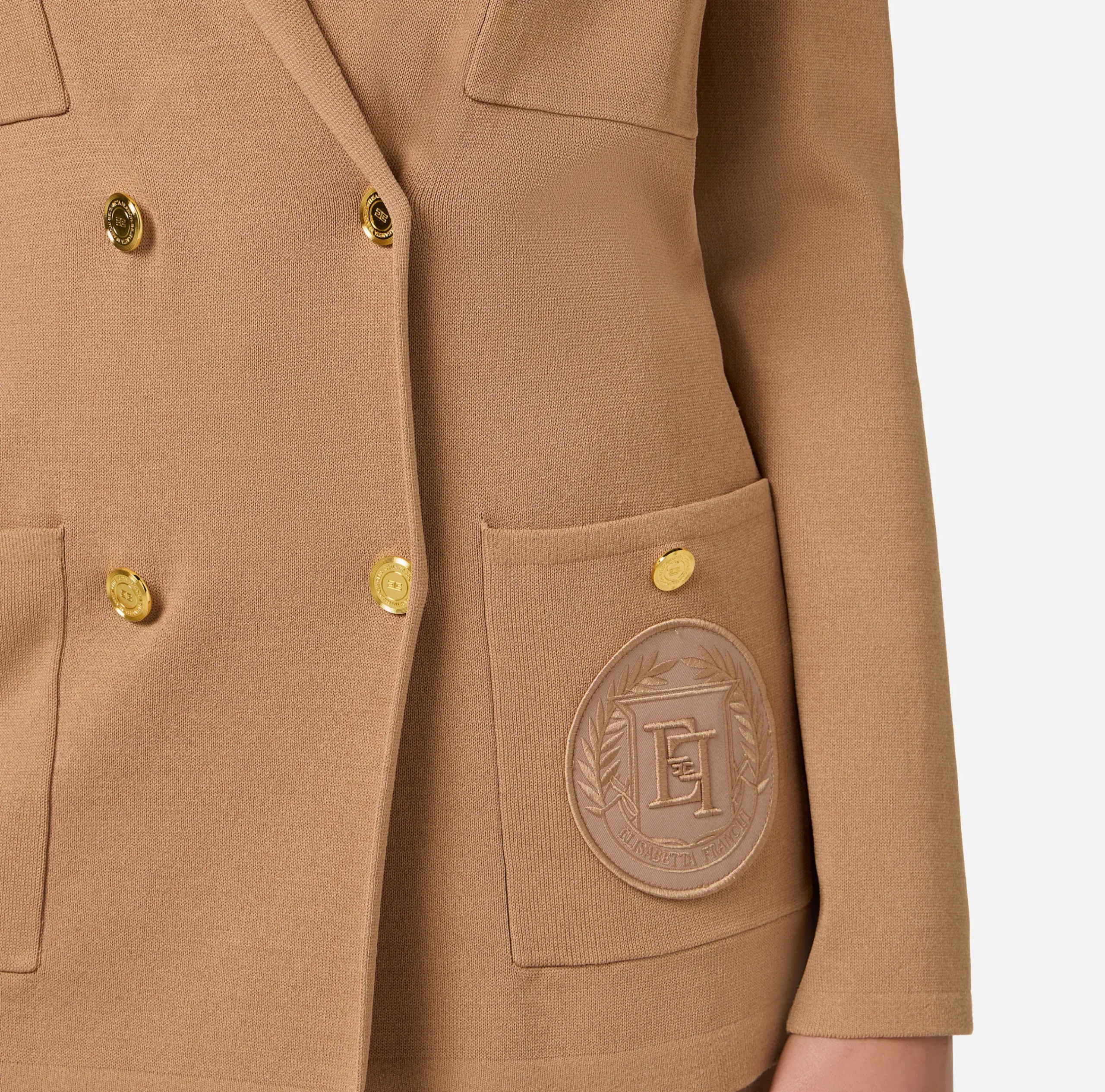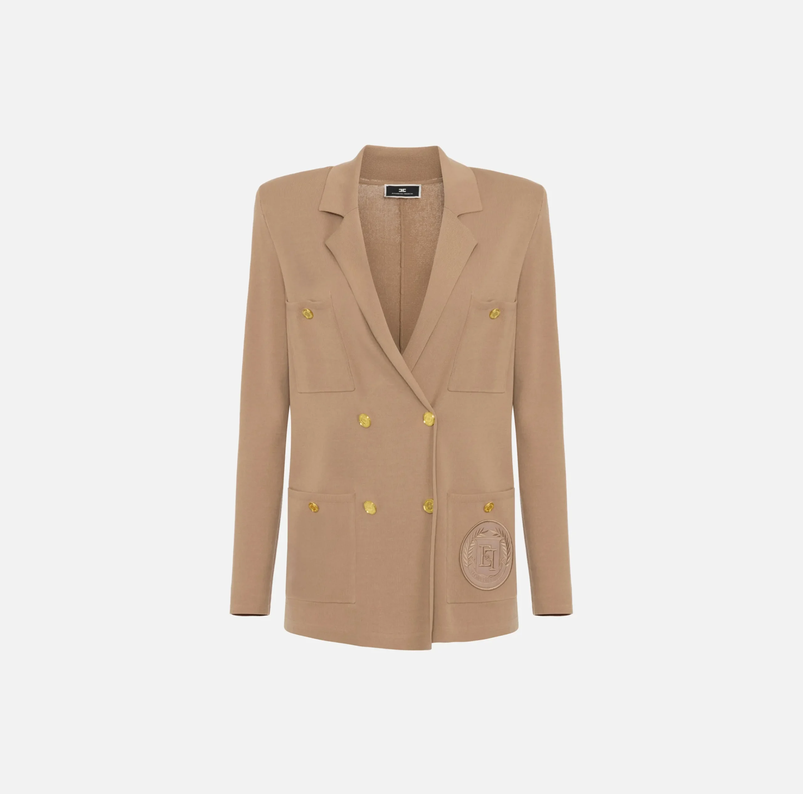 Giacche & Trench|Maglieria E Felpe|Elisabetta Franchi Giacca doppiopetto in viscosa con patch logo Camel