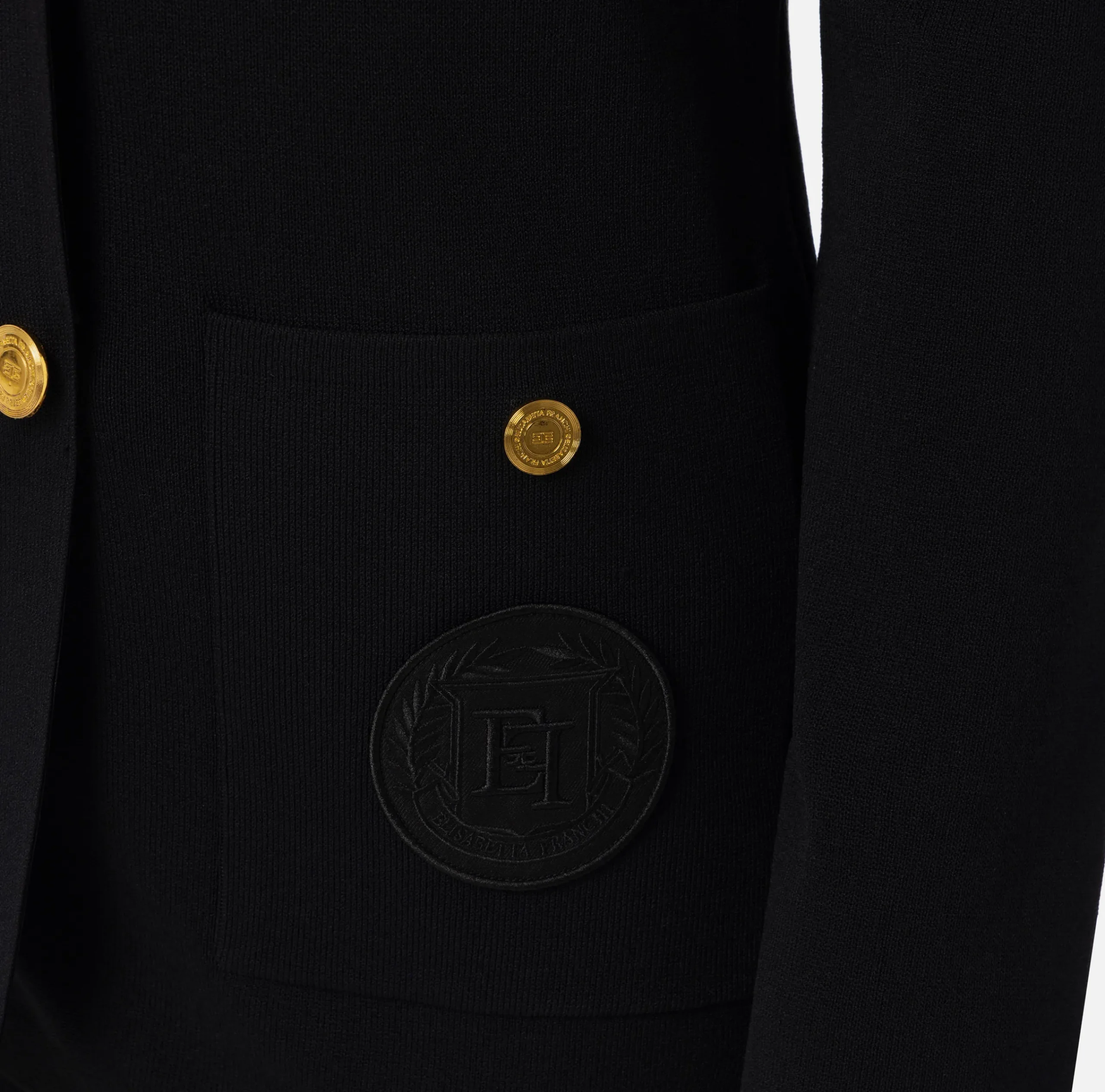 Giacche & Trench|Maglieria E Felpe|Elisabetta Franchi Giacca doppiopetto in viscosa con patch logo Nero