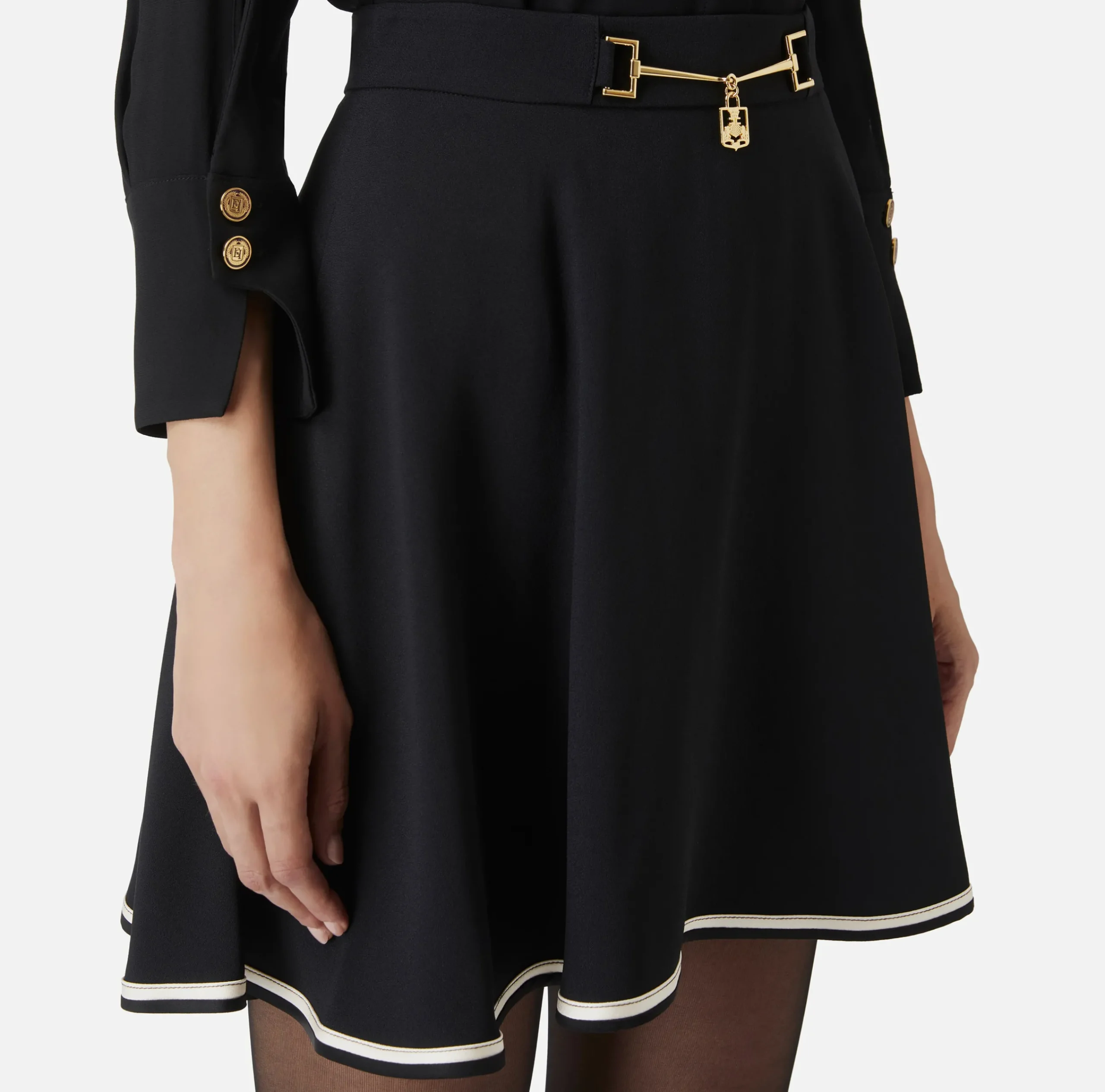Gonne|Elisabetta Franchi Minigonna a ruota in crêpe con morsetto Nero/Burro