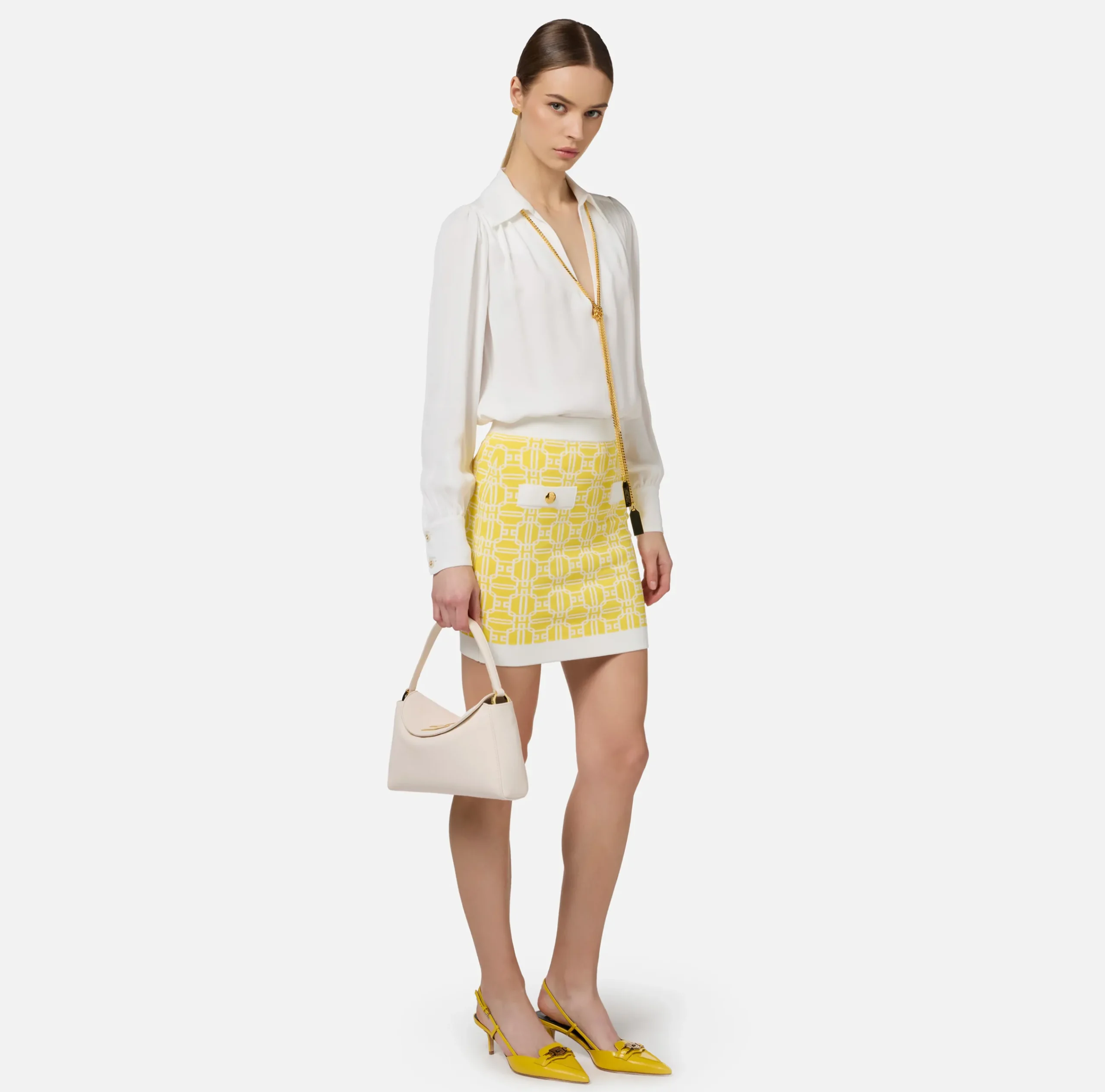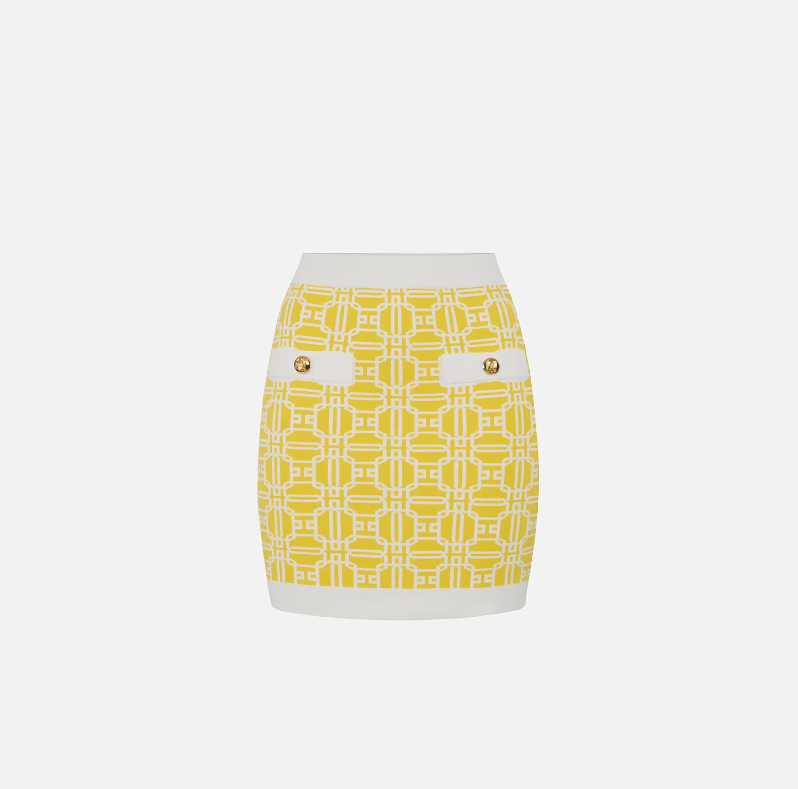 Gonne|Elisabetta Franchi Minigonna in viscosa jacquard con logo Mimosa/Avorio