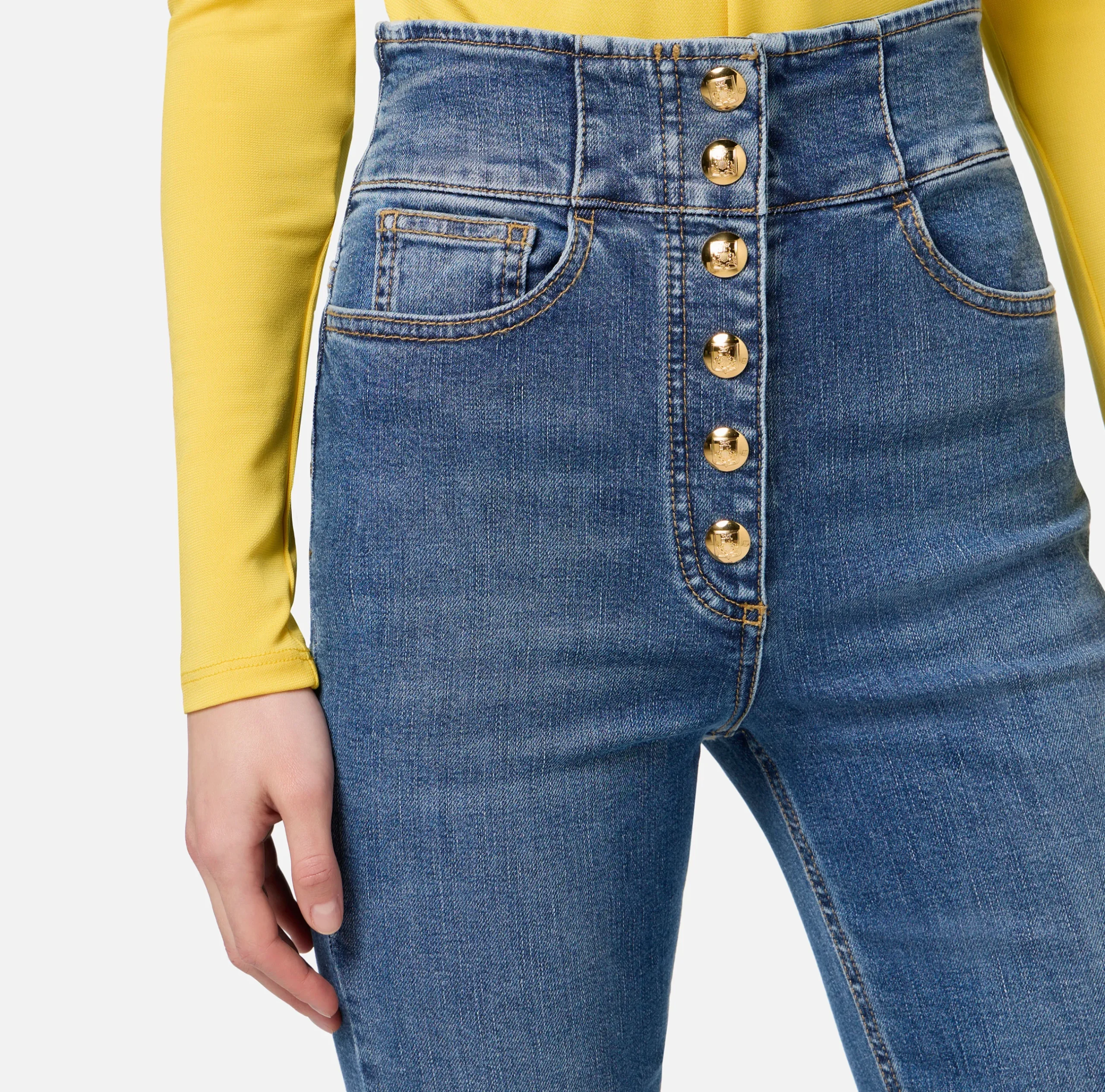 Jeans|Elisabetta Franchi Jeans a zampa in cotone stretch con bottoniera centrale Bluedenim