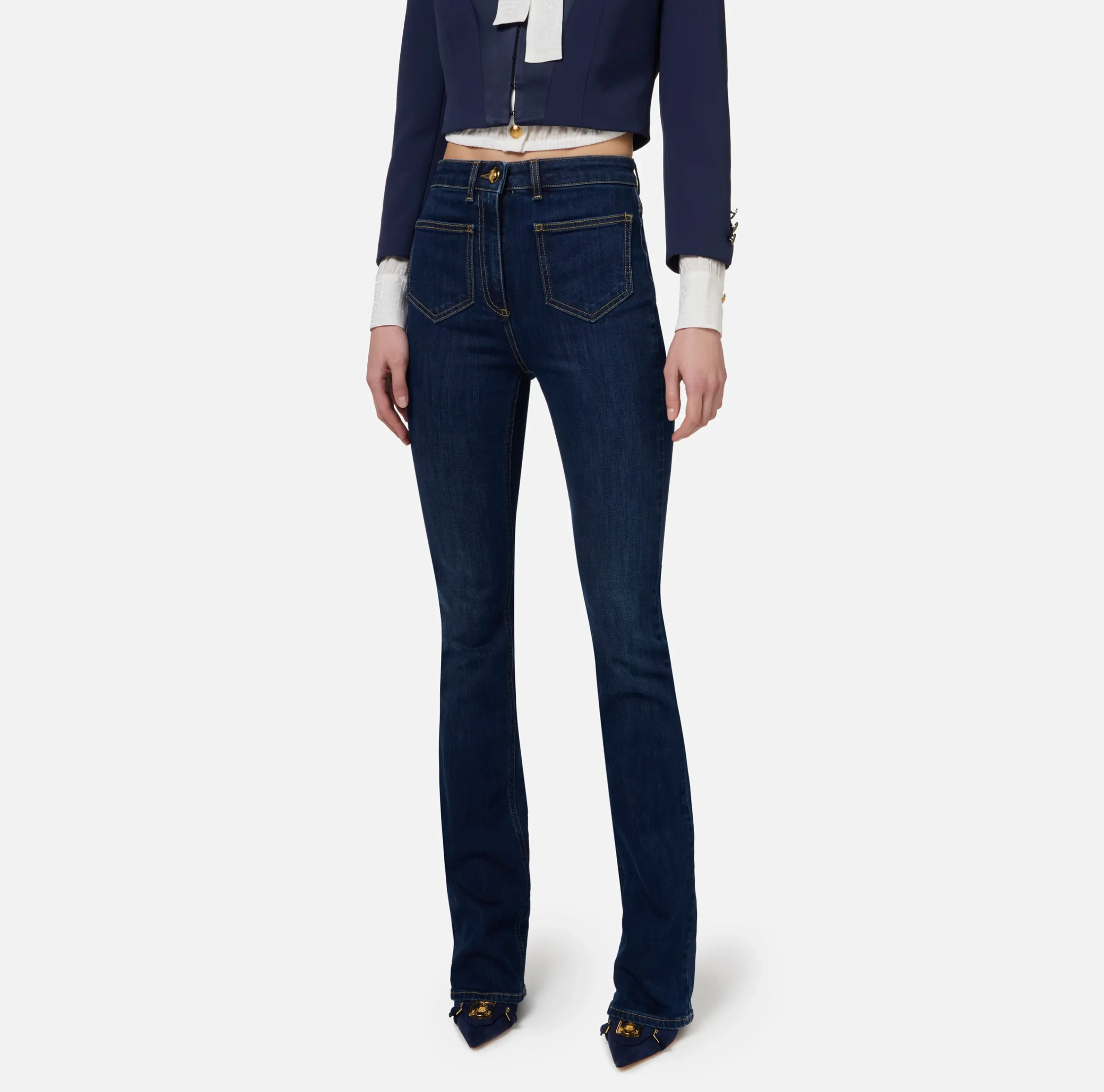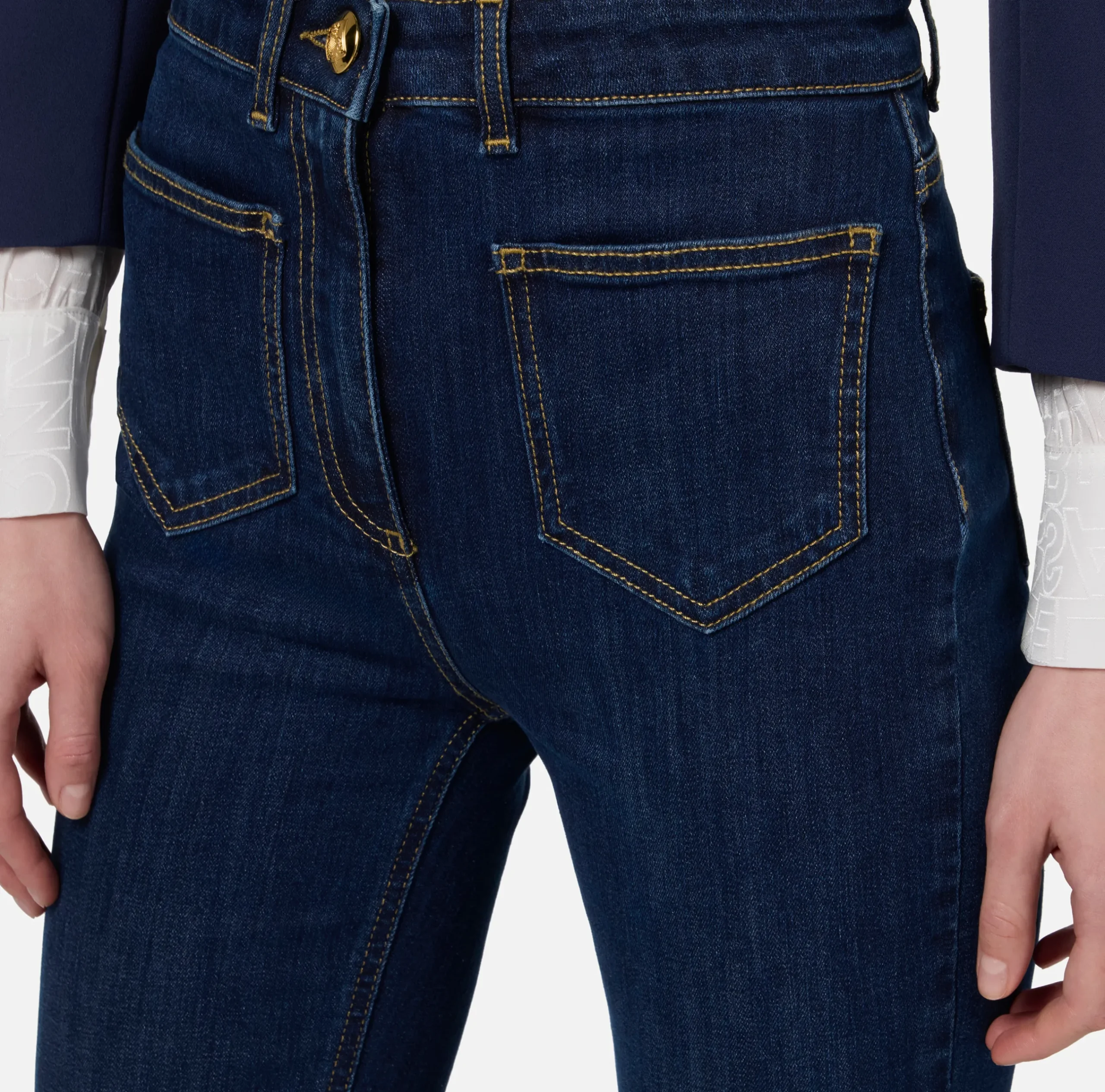 Jeans|Elisabetta Franchi Jeans dritto in cotone stretch con placche logo Bluedenim