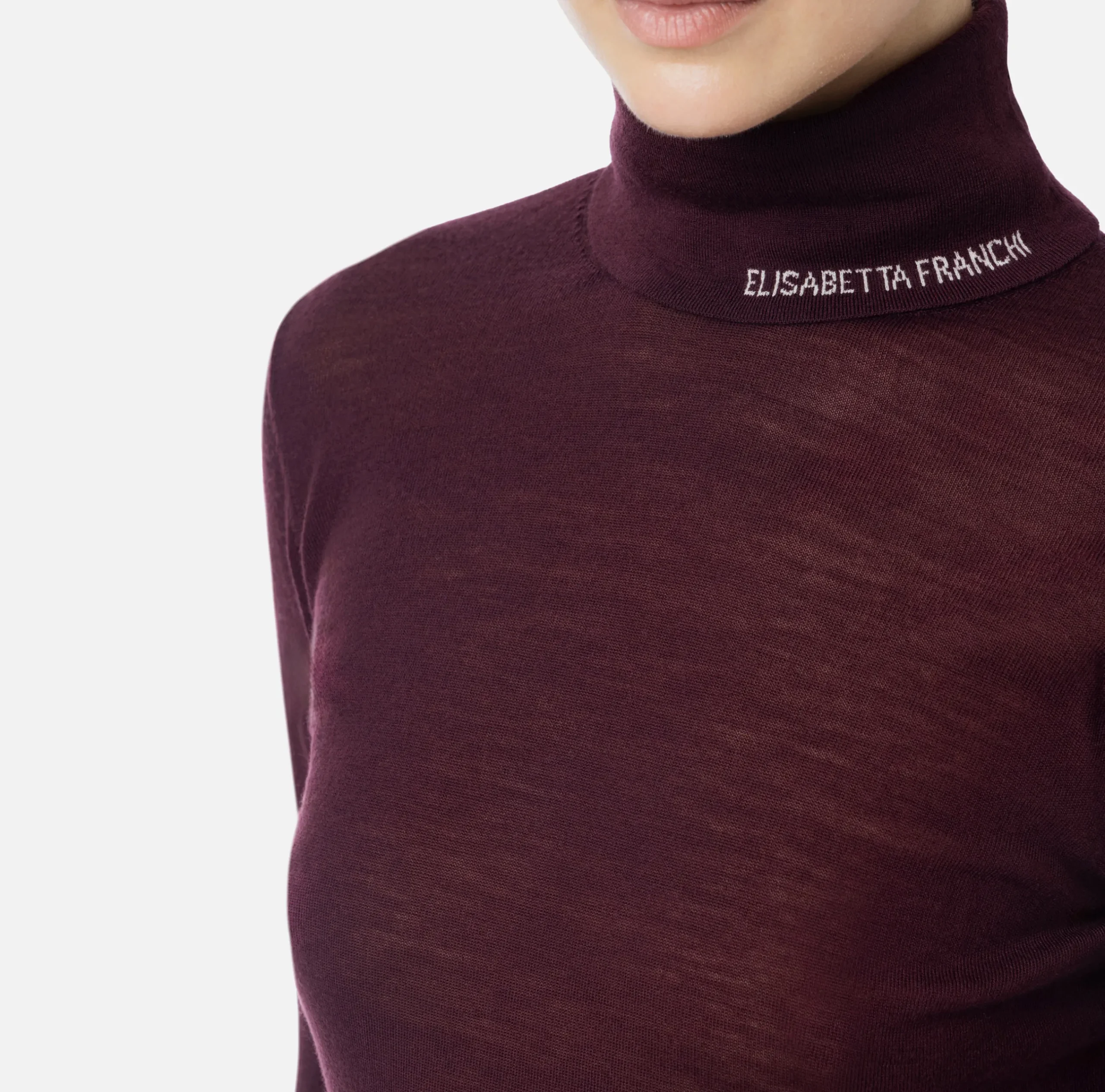 Be the first to review “Maglieria E Felpe|Elisabetta Franchi Dolcevita in lana merino con logo jacquard RougeNoir” Annulla risposta