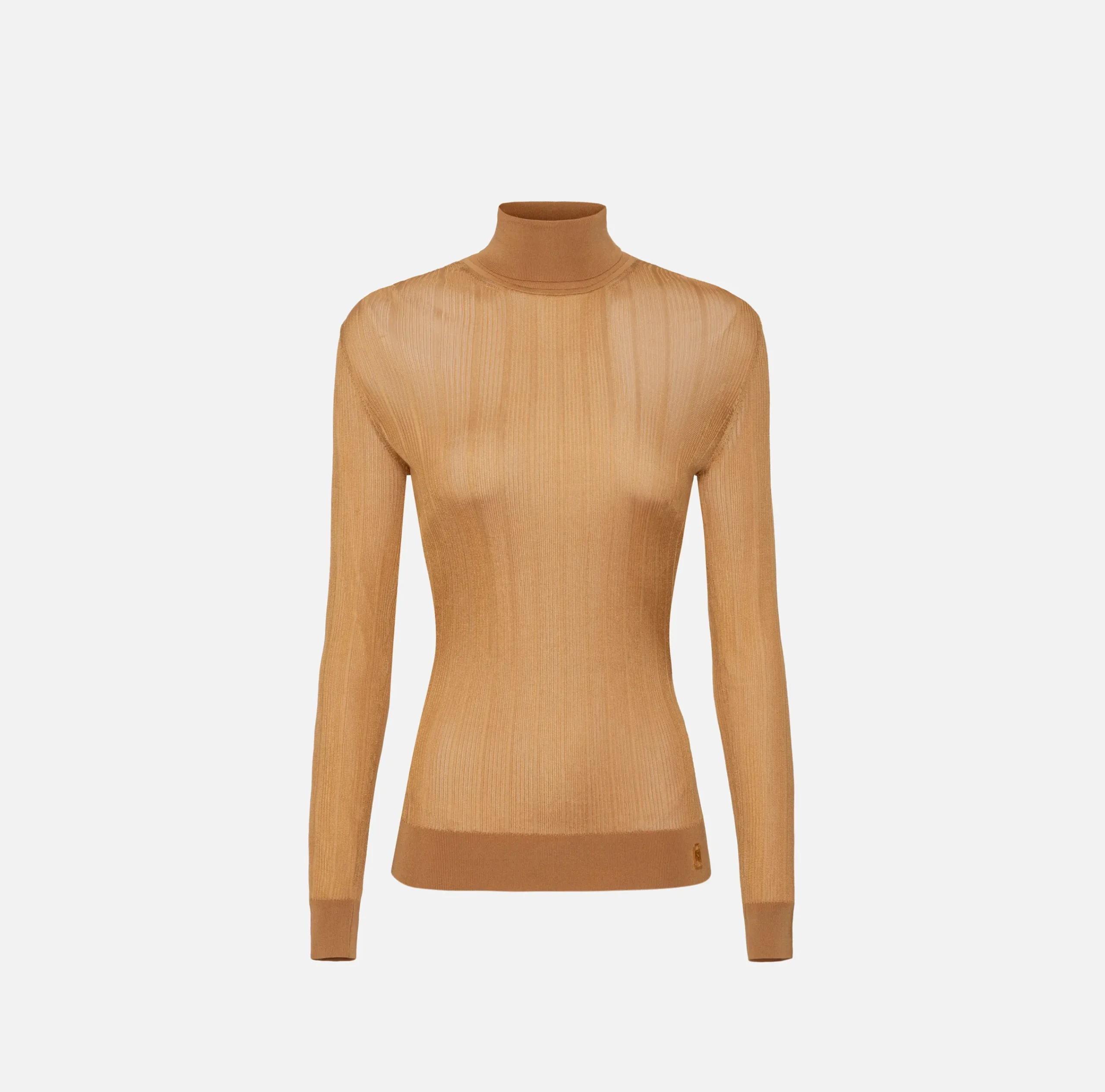 Maglieria E Felpe|Elisabetta Franchi Dolcevita in viscosa lucida a costine Bronze